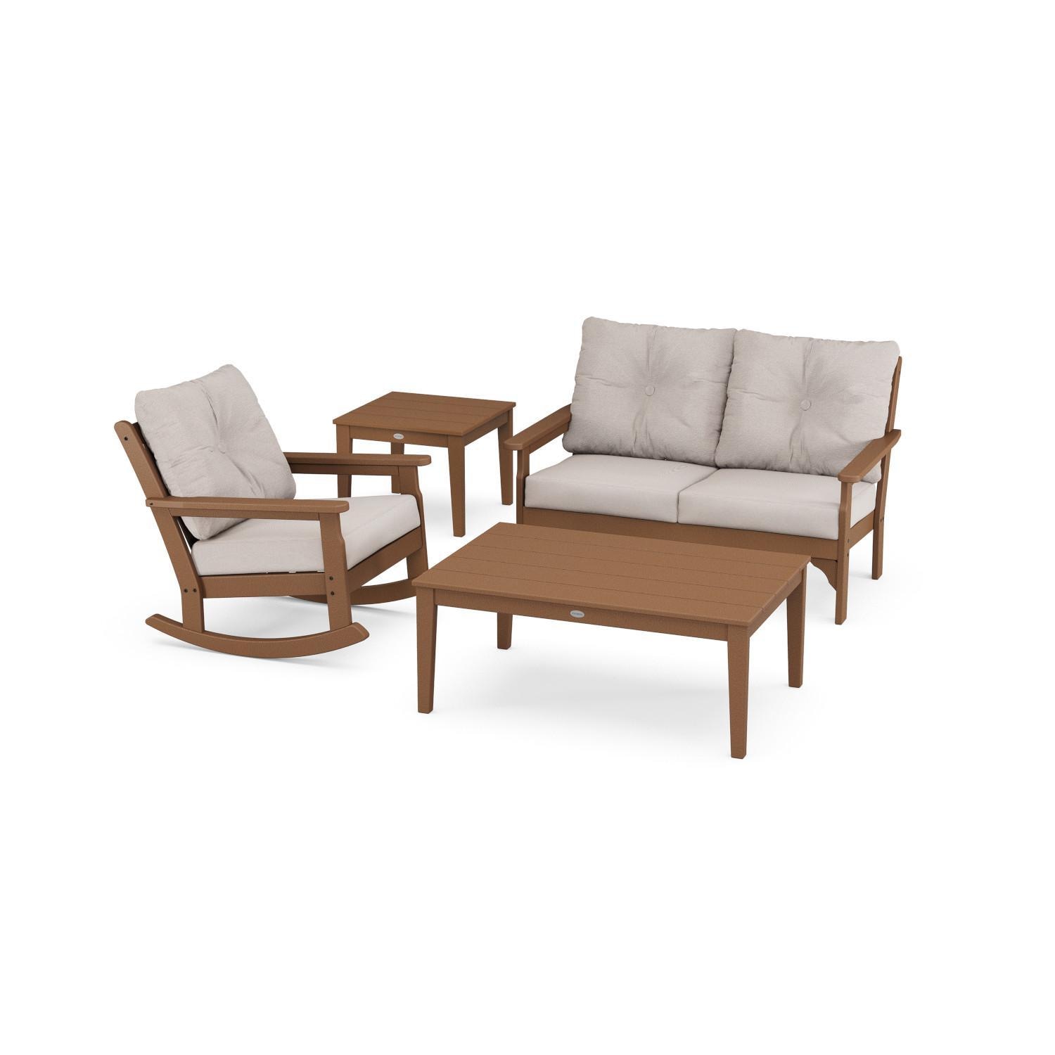 - Includes (1) Vineyard Deep Seating Rocking Chair, (1) Vineyard Deep Seating Settee, (1) Newport 22 End Table, and (1) Newport 28 x 42 Coffee Table
