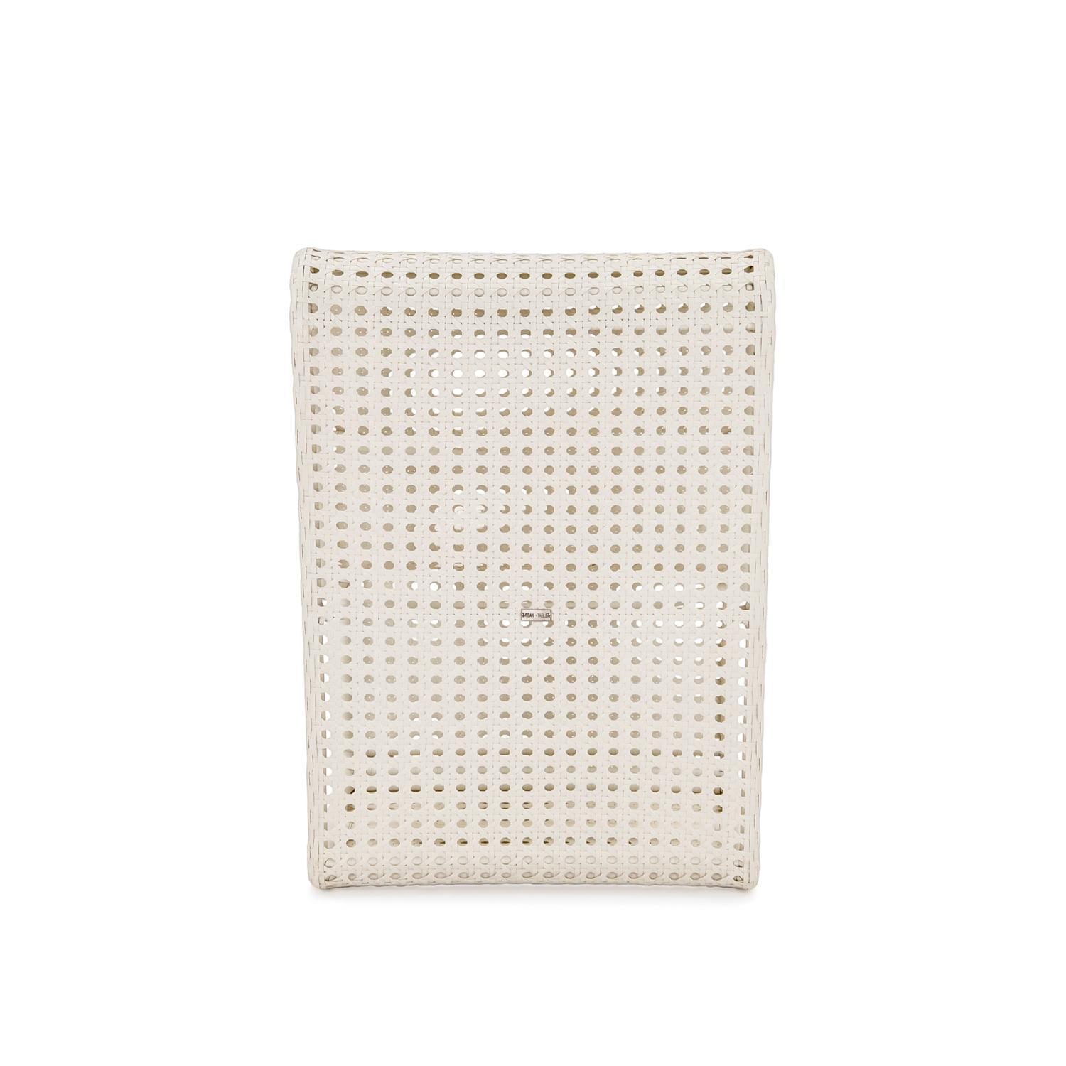 Breeze Wicker Patio Armless Club Chair in Off-White Cane By Teak + Table
