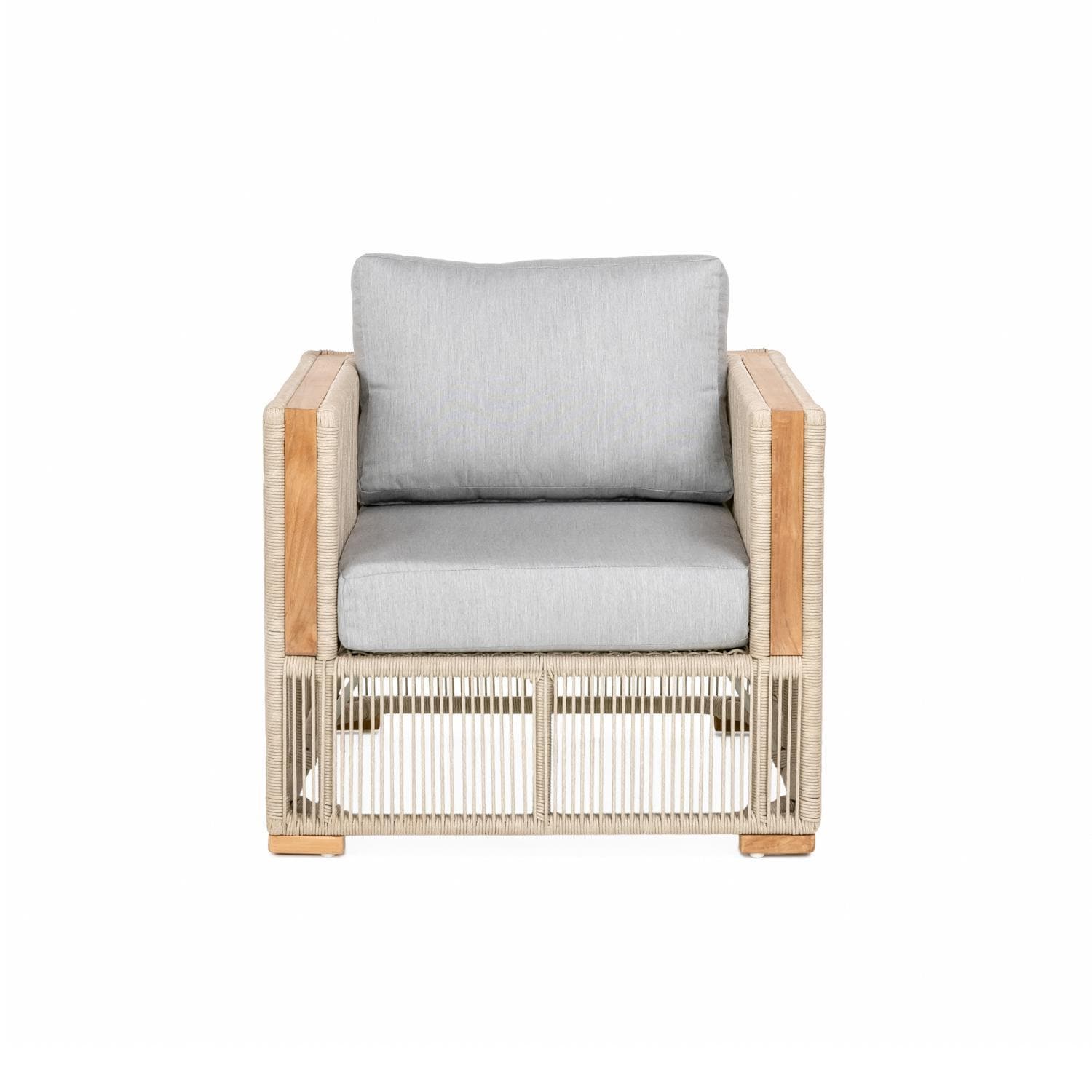Breeze Olefin Rope & Teak Patio Club Chair in Dune/Granite By Teak + Table