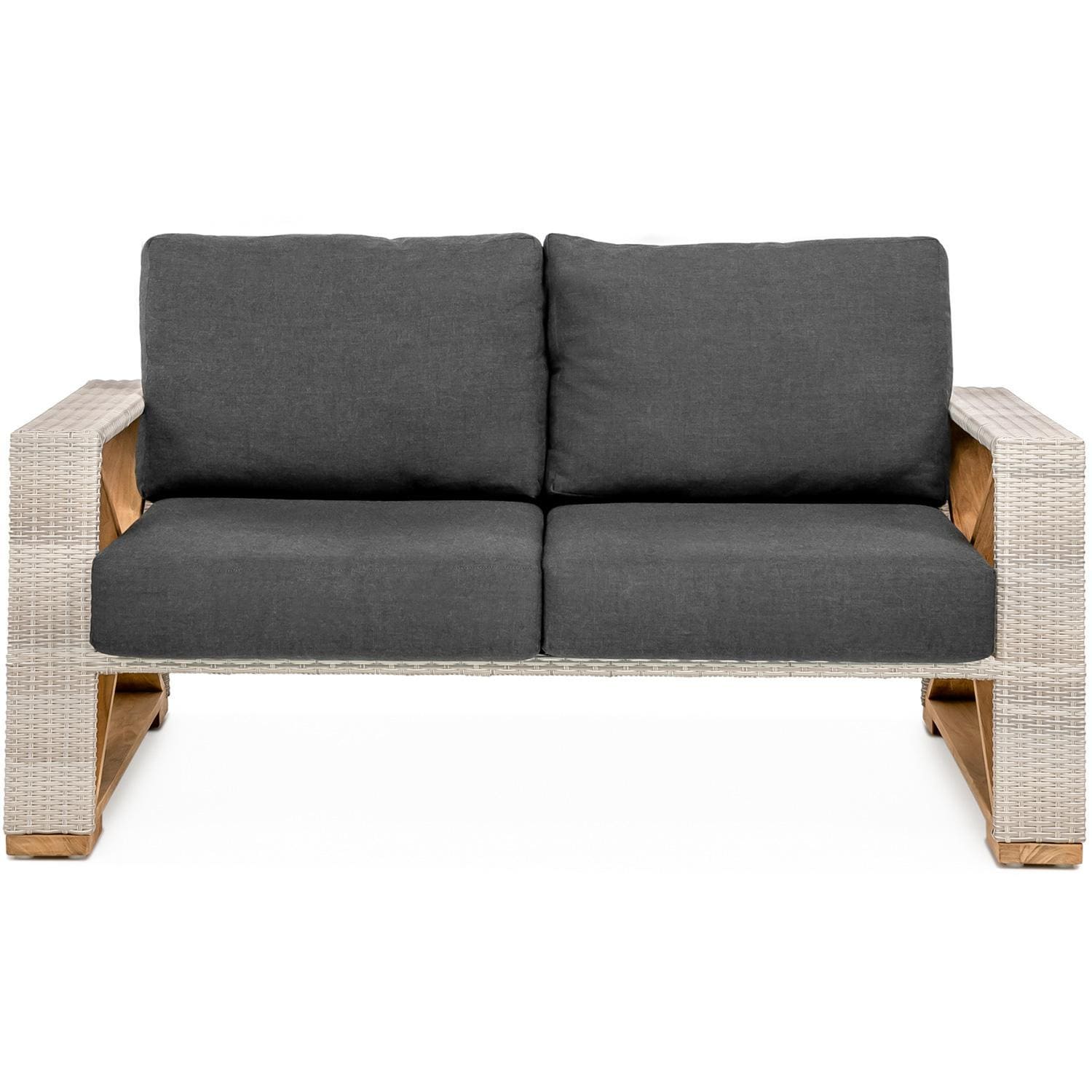 Upgrade your outdoor entertaining space with the Caicos Loveseat, a sophisticated and stylish piece that is sure to make a statement. Made from top-quality Grade A teak and resin wicker, this chair is both durable and fashionable. Pair it with our matching Caicos Club Chair and Sofa for a cohesive look, or use it to add a bold and striking accent to your existing teak furniture. With its sleek design and attention to detail, the Caicos Loveseat is a must-have for any discerning homeowner. Includes Carbon color cushions.