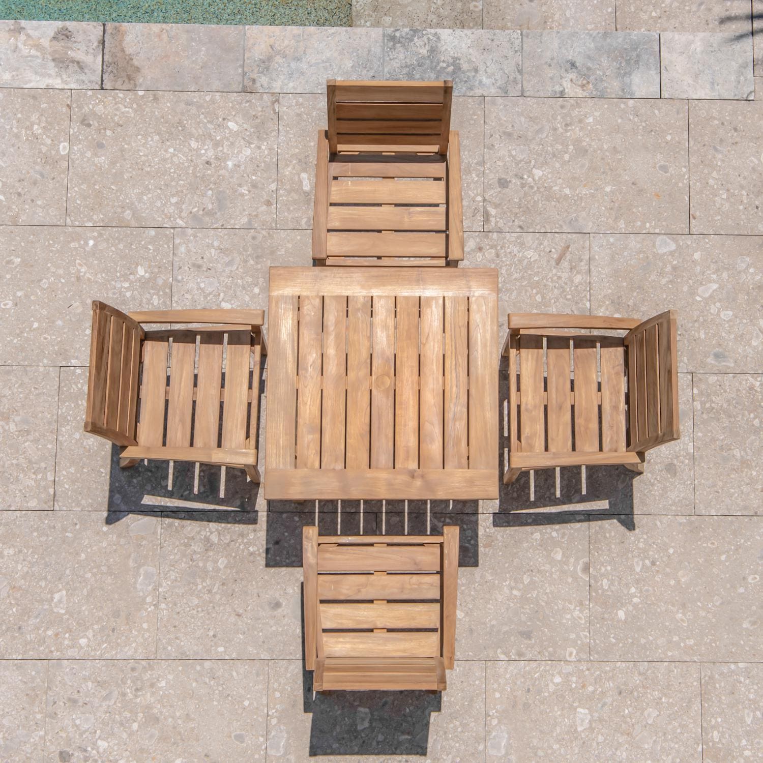 One of the key pieces in the collection is the Friday 42 -Inch Dining Table, which features a traditional slatted top and a standard size umbrella hole. The frame of the table is made from a combination of Grade A teak for stability and durability, and 316 stainless steel for corrosion resistance. The table is designed for minimal assembly and easily moveable.