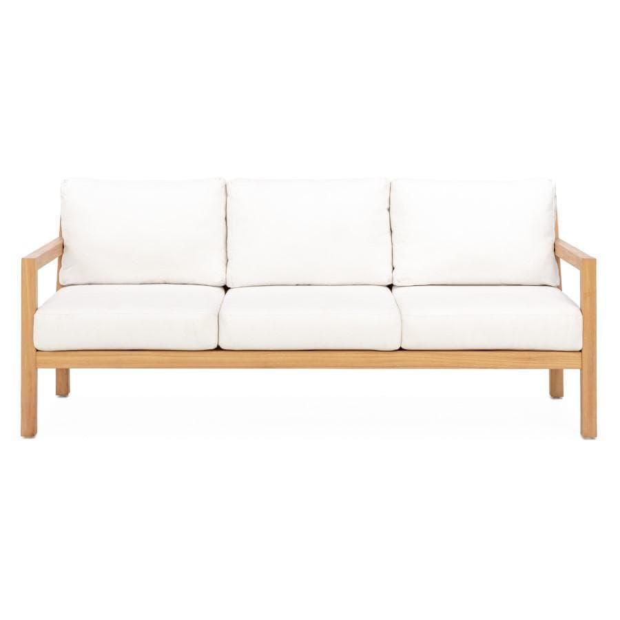 The Monday Sofa with Natural Cushions is the perfect seating piece for any setting. Its sleek, angular lines and Grade A Teak frame lend a modern, coastal vibe to hotels, country clubs, and homes. Perfect for laying down on the best summer day and strong enough for any commercial environment, this sofa is sure to become a favorite. Most people pair the sofa with 2 club chairs and a coffee table for the ultimate outdoor relaxation experience. Sit back and relax on the luxurious deluxe cushions, knowing that the durable teak material requires minimal maintenance. Host a pool party or simply enjoy a quiet evening under the stars - the Monday Sofa is the perfect companion for any occasion.