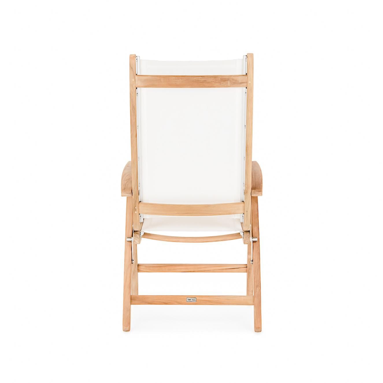 The Cayman Reclining Dining Chair in White, a luxurious and versatile addition to your outdoor seating area. Designed for complete relaxation, this chair is the perfect addition to any outdoor dining set or casual seating area. With five different reclining positions, you can easily find the most comfortable position for you to relax in. The chair's versatility makes it perfect for any occasion, whether you're lounging by the pool or enjoying a meal with family and friends. The chair is constructed with a combination of premium materials, ensuring durability and longevity. The frame is made of Grade A Teak and 316 stainless steel, ensuring that it can withstand the elements and requires minimal maintenance. The chair's frame is sturdy and the teak wood gives an elegant touch. One of the great features of this chair is its ability to fold flat for easy storage. It's great for those who have limited outdoor space or for those who like to store their outdoor furniture during the winter months.