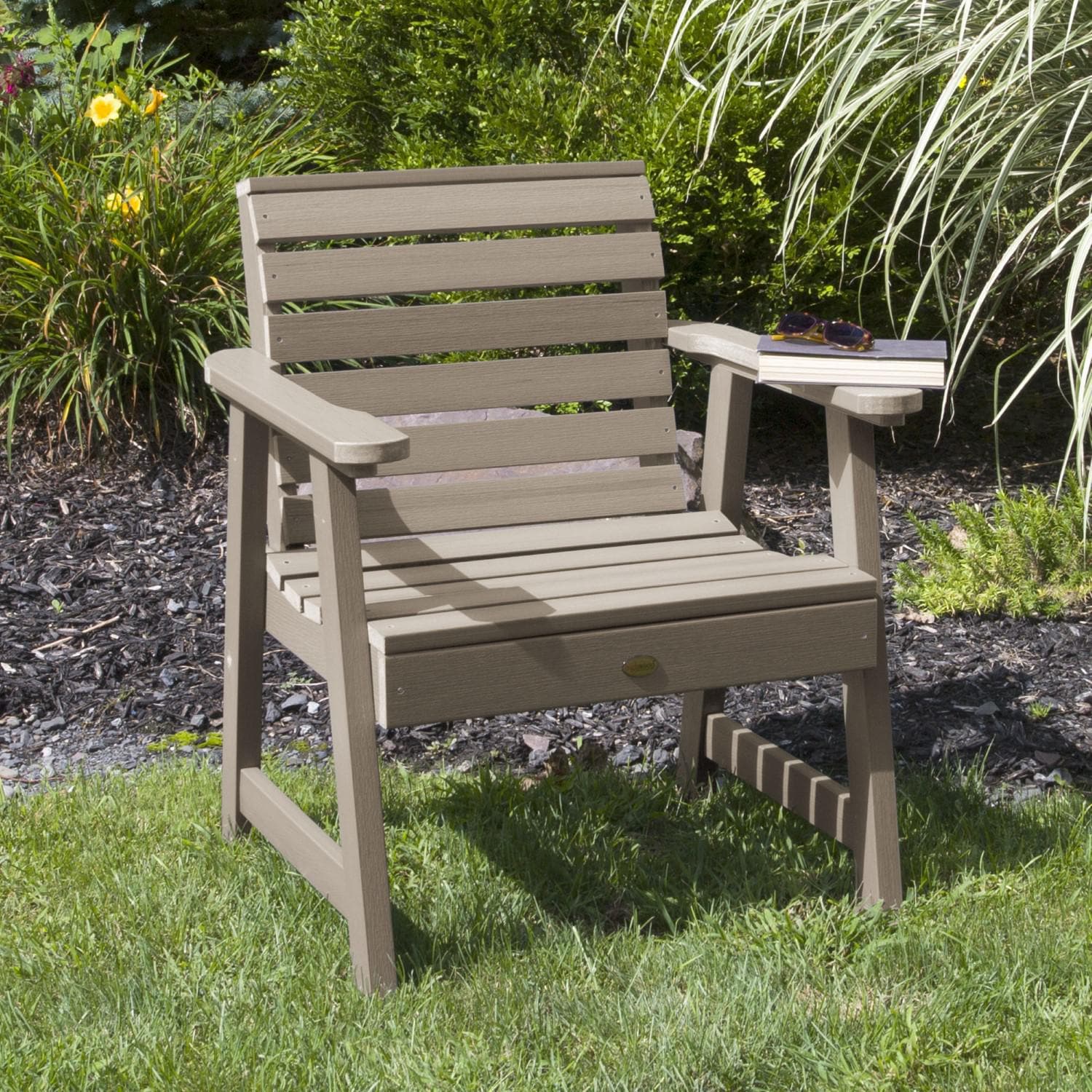 Welcome to Lakeview Outdoor Designs. Welcome to relaxation. We are proud to offer the wood-replacement material of choice, as used in America's largest theme parks, coastal resorts and hot-tub cabinets now available for your own backyard! Make your garden a contemporary yet, comfortable safe haven. This Lakeview Outdoor Designs Garden Chair in Woodland Brown embodies the sleek styling the Elm Pointe Collection is known for. Although bold and modern, this chair does not lack in welcoming comfort. Adorn the chair with your favorite outdoor pillow or seasonal accouterments like a pumpkin, scarecrow, statue, or snowman. The proprietary Lakeview Outdoor Designs high-grade poly lumber used in this product offers the most realistic look of natural wood WITHOUT the headaches of maintaining or replacing every few seasons. Simply wash your Lakeview Outdoor Designs furniture to remove any dirt or grime. Explore the entire line of Lakeview Outdoor Designs products to coordinate other beautiful, durable products that will make your outdoor living space the envy of the neighborhood. This product is assembled with 304-grade stainless steel hardware and comes with the assurance of a manufacturer's 12-year residential limited warranty. The chair has been load-tested, per ASTM 1561-03 (2008) standard for Outdoor plastic furniture, and has a 500-pound weight capacity. Some assembly is required (see assembly guide) and assembled chair dimensions are 27.2W x 33.7H x 26D (28lbs).
