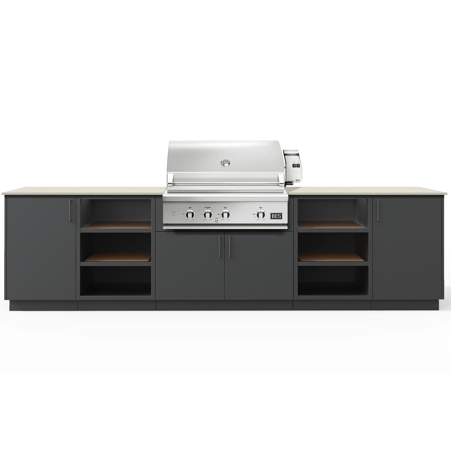 All Urban Bonfire outdoor kitchens are constructed of non-combustible, thick gauge marine grade aluminum. This aluminum is twice as thick as most stainless steel cabinetry on the market, yet lighter in weight, making it easy to transport. It also cooperates well during installation. Its anti-rusting qualities make it the ideal material for extreme climates (snow, ice, salt water, humidity) and long term quality. This Savannah 36 also features Urban Bonfire's NACRAĒ™ finish — a standard feature on all Urban Bonfire products and accessories — in Anthracite. NACRAĒ™ provides durable, 4-season resistance to scratches, fading, and stains. Its FDA-approved formulation features all-natural anti-microbial properties and is created with environmentally sustainable materials and processes.Dekton Countertop & 304 Stainless Steel Hardware