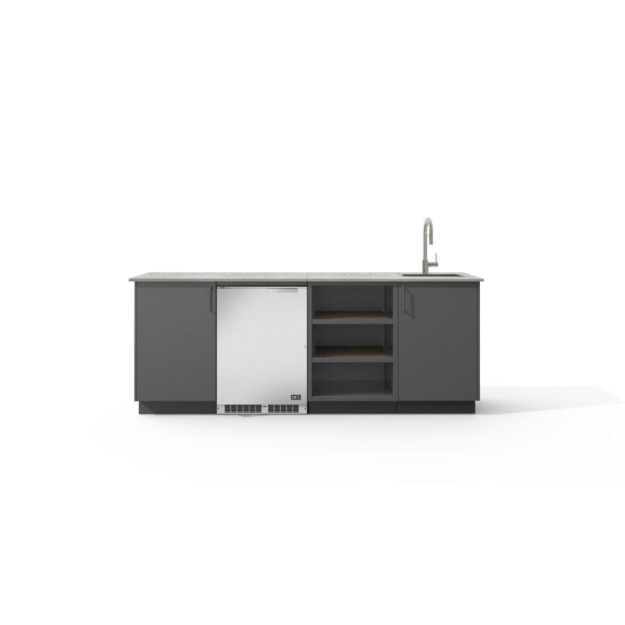 All Urban Bonfire outdoor kitchens are constructed of non-combustible, thick gauge marine grade aluminum. This aluminum is twice as thick as most stainless steel cabinetry on the market, yet lighter in weight, making it easy to transport. It also cooperates well during installation. Its anti-rusting qualities make it the ideal material for extreme climates (snow, ice, salt water, humidity) and long term quality. This Celeste Island also features Urban Bonfire's NACRAĒ™ finish — a standard feature on all Urban Bonfire products and accessories — in Anthracite. NACRAĒ™ provides durable, 4-season resistance to scratches, fading, and stains. Its FDA-approved formulation features all-natural anti-microbial properties and is created with environmentally sustainable materials and processes.Dekton Countertop & 304 Stainless Steel Hardware