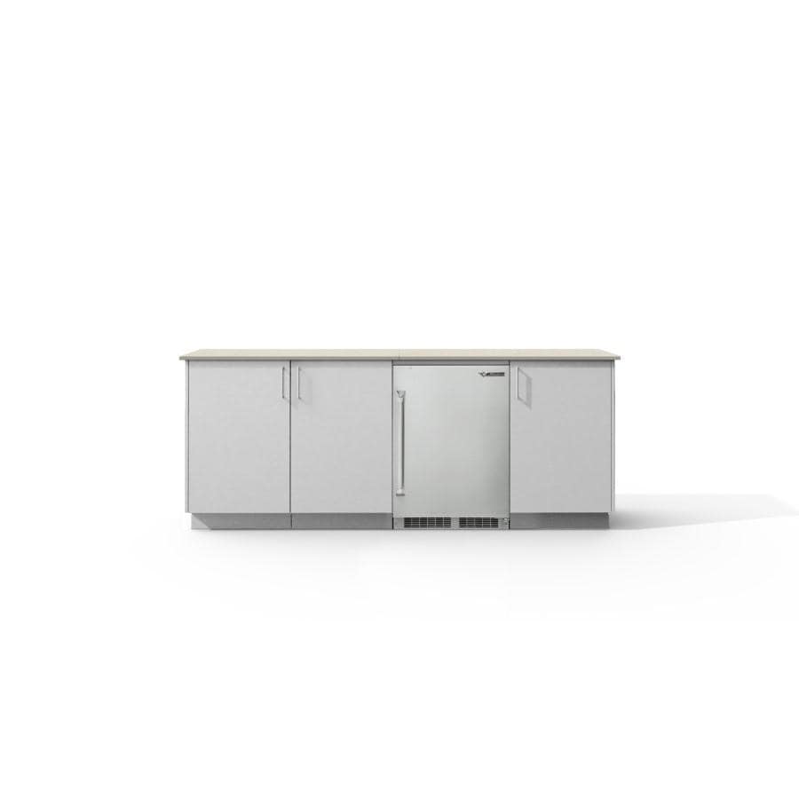 This Vermont Island features a 2cm thick Dekton countertop in Danae. Dekton is designed to look like natural stone, but without any of the micro-defects that can occur in natural stone. This material is non-porous, making it easy to clean and maintain. All door slides, hinges, pulls, and leveling legs are made of outdoor grade 304 stainless steel.