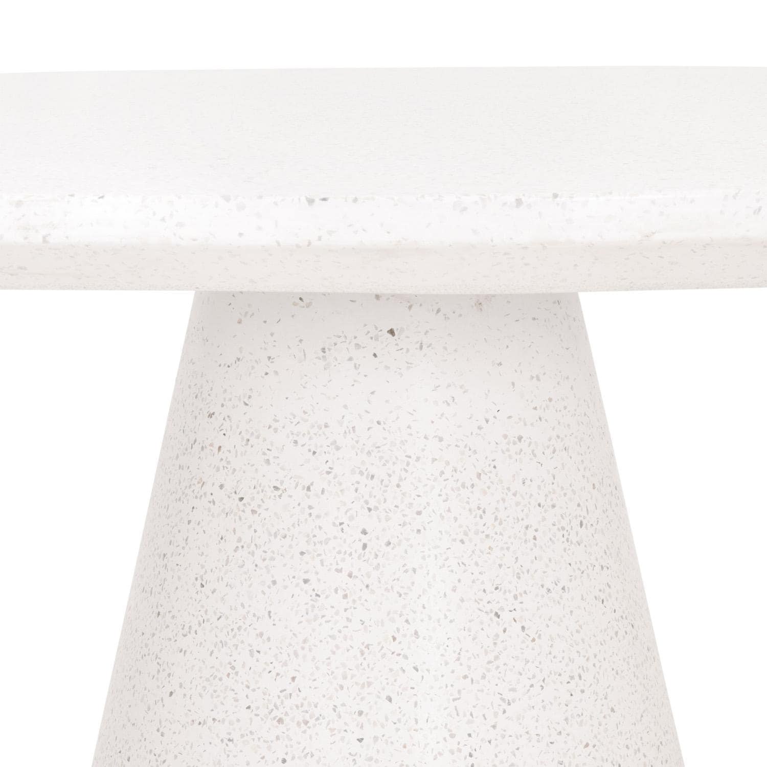 Furnish your dining space with this round Mediterranean-style dining table. The tabletop and pedestal are made of a beautiful Ivory colored concrete that's suitable for both indoor and outdoor use. The concrete is finished with a light gray speckled design, resembling a Terrazzo pattern. The soft and elegant Terrazzo design will add a piece of the Mediterranean to your dining room or outdoor dining space. The table is 55 inches round and can comfortably seat 4 people.