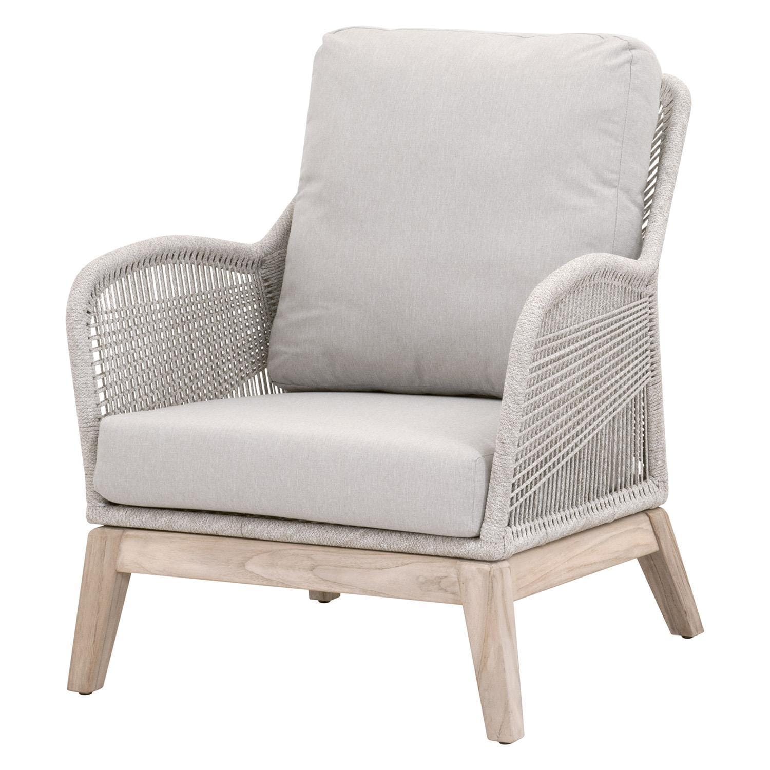 Experience unparalleled outdoor relaxation and coastal style with the Peninsula Way Outdoor Club Chair from Lakeview. This is a stunning transitional piece that combines durability and elegance. The solid gray teak base supports the aluminum frame that is adorned with taupe and white flat rope, showcasing a sophisticated rope weave design. With dimensions of 30.5 wide, 37 deep, 35 high, and a seat height of 18, the chair provides generous seating for optimal comfort. The all-weather removable cushions are crafted from 100% olefin fabric and foam, offering easy maintenance and lasting coziness. The sturdy aluminum frame and solid teak base ensure stability, while the KD construction enables straightforward assembly. For a complete lounging experience, pair this exquisite club chair with the matching footstool (sold separately). This club chair is an outstanding choice for those seeking the perfect marriage of style, comfort, and resilience in their outdoor furniture collection.