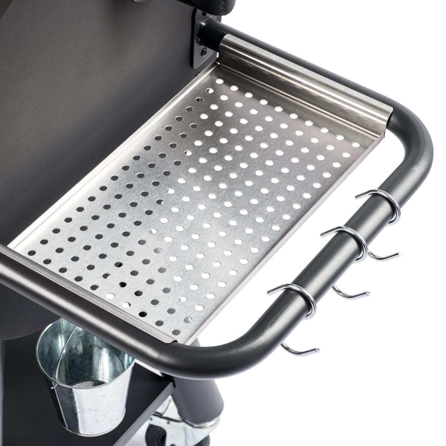 Should you choose to change fuel flavors, the back of the hopper includes a pellet-release feature for easy swapping. The Victory pellet grill features 3 stainless steel tool hooks for your convenience. Its sturdy steel cart, meanwhile, has 2 heavy-duty polyurethane wheels along with 2 locking caster wheels for smooth rolling around the patio or backyard. Add it all together, and the Victory pellet grill is the clear winner among its peers and the top choice for those who want to Taste Victory.