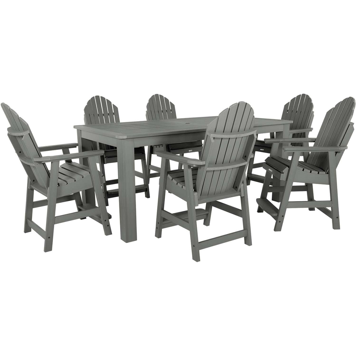 With its coastal-inspired beach feel, the Dream Bay dining set in Coastal Teak is truly a design icon that combines timeless styling, comfort, and functionality. The 42'' X 84'' rectangle dining set in counter height (36'' tall including umbrella hole) is skillfully crafted to provide sanctuary in a variety of settings. The Dream Bay Collection's classic laid back styling provides a beautiful look to the six armchairs that surround the sturdy well-built table.