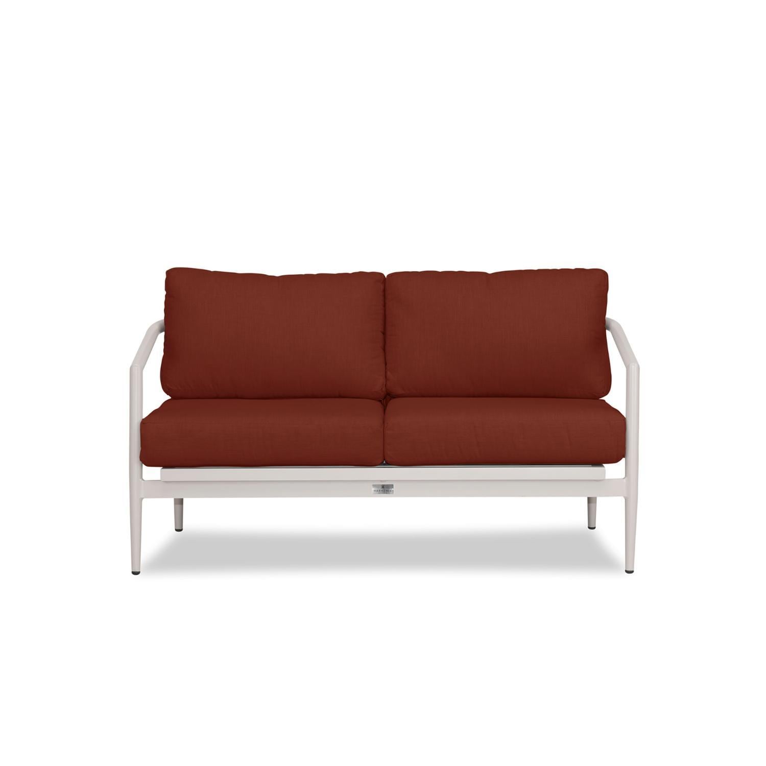The Midnight Cove 5 Piece Sofa Set in an Urban Stone finish with Canvas Henna cushions is an imagined Mid Century Modern design brought to life with Carrera Olefin rope. Accented with tapered legs, subtle curves and an intertwining roped back for flair, the silhouette of the Midnight Cove collection is a sophisticated work of art. Midnight Cove was efficiently designed to be both compact in its footprint while still offering full sized deep seating comfort. Its fully-welded aluminum frames are treated with a powder-coated finish to ensure lasting performance across the seasons. Beautiful Carrera Olefin rope compliment the frames making it both visually appealing and durable in all types of climates. The cushions are made in the USA with quick-drying, Dacron and UV-treated, marine-grade PremoBond thread to create a supportive, yet comfortable seat that is meant to last throughout the seasons. All cushions are constructed from Sunbrella performance fabrics, which carry a 5-year fade warranty. This piece is offered in 9 popular Sunbrella fabric options which are fade resistant, easy to clean, and ready to ship within days of placing an order! The sleek, aluminum table perfectly compliments the rest of the deep seating set!