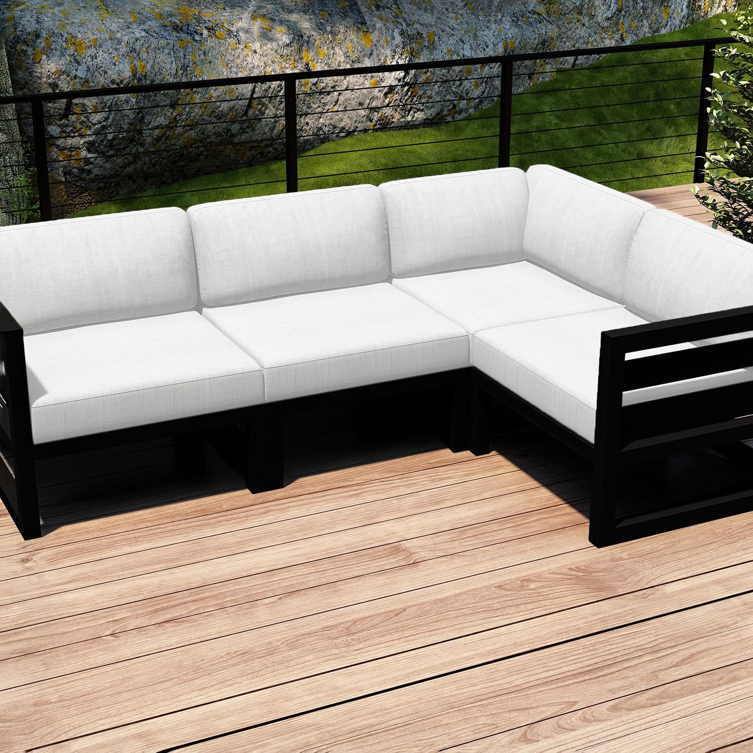 The Misty Cove 4 Piece Sectional Set - Black - Canvas Natural brings artful design to your outdoor space. Sit back and relax with a collection that is both stylish and comfortable with its sleek silhouette and extra-spacious deep seating. Its fully-welded aluminum frames are treated with a powder-coated finish to ensure lasting performance across the seasons. The cushions are made in the USA with quick-drying, Dacron and UV-treated, marine-grade PremoBond thread to create a supportive, yet comfortable seat that is meant to last throughout the seasons. All cushions are constructed from Sunbrella performance fabrics, which carry a 5-year fade warranty. This piece is offered in 9 popular Sunbrella fabric options which are fade resistant, easy to clean, and ready to ship within days of placing an order!