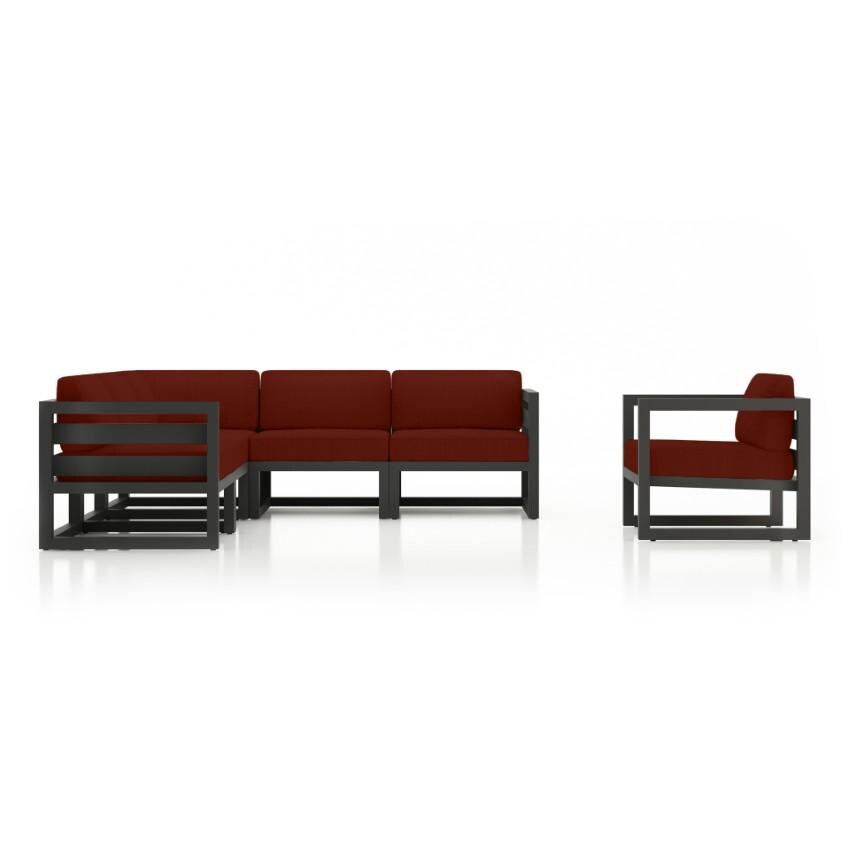 The Misty Cove 6 Piece Sectional Set - Slate - Canvas Henna brings artful design to your outdoor space. Sit back and relax with a collection that is both stylish and comfortable with its sleek silhouette and extra-spacious deep seating. Its fully-welded aluminum frames are treated with a powder-coated finish to ensure lasting performance across the seasons. The cushions are made in the USA with quick-drying, Dacron and UV-treated, marine-grade PremoBond thread to create a supportive, yet comfortable seat that is meant to last throughout the seasons. All cushions are constructed from Sunbrella performance fabrics, which carry a 5-year fade warranty. This piece is offered in 9 popular Sunbrella fabric options which are fade resistant, easy to clean, and ready to ship within days of placing an order!