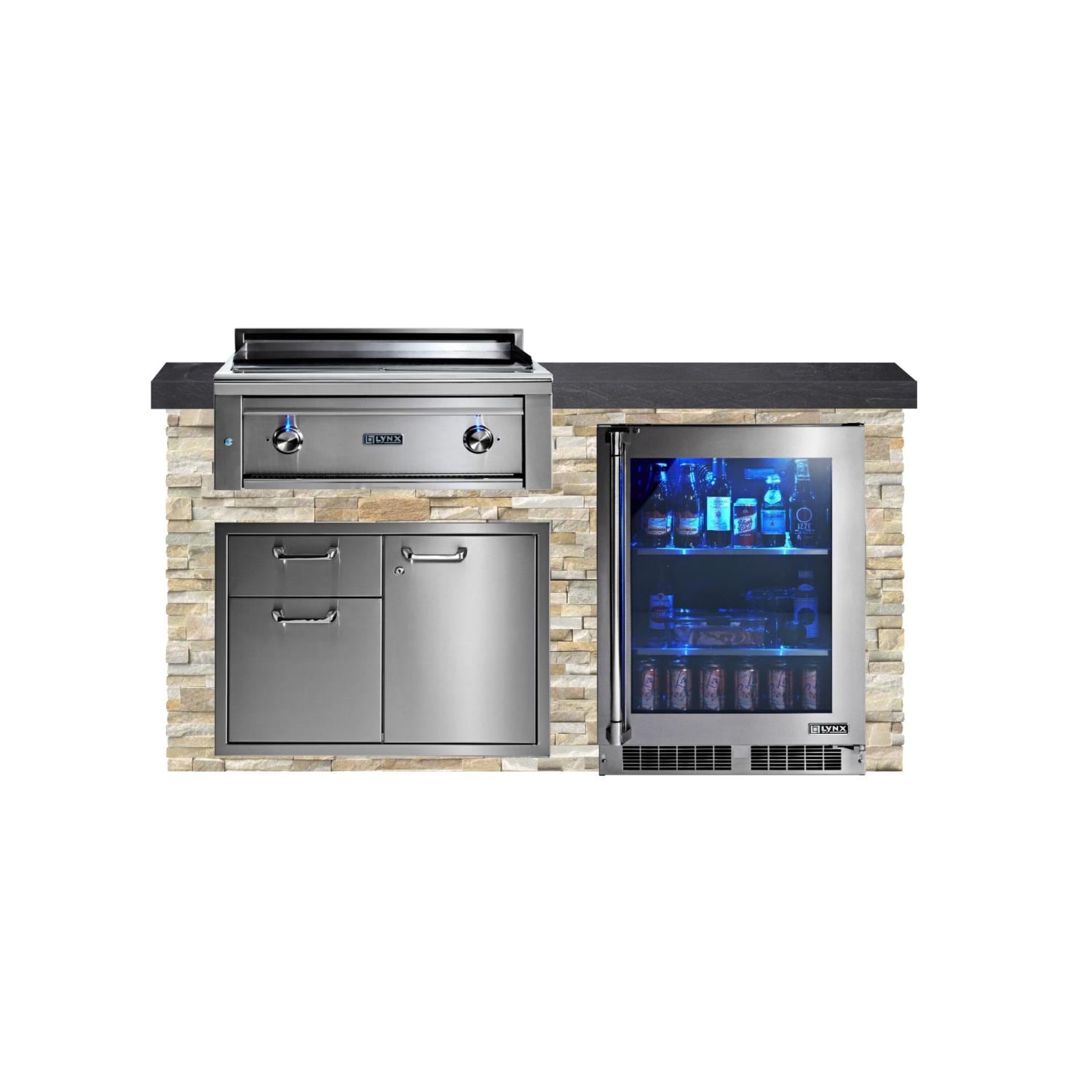 Experience the finest in outdoor grilling performance with the superior craftsmanship and innovative features found in this 30-inch Asado BBQ grill from Lynx. The quality begins outside with gleaming, high-grade 304 stainless steel that is seamlessly welded to eliminate areas where grease and moisture can collect. The L30AG-LP propane gas grill features a multi-layer All-Clad aluminum griddle cooktop sandwiched between two sheets of stainless steel for even heat distribution. Unique and versatile, this grill will inspire creations from stacks of buttermilk pancakes to sizzling fajitas and grilled chorizo sausage over the 495 square inch cooking area. Underneath the cooking surface, two 23,000 BTU Lynx Trident adjustable infrared burners allow you to cook over two independent cooking zones. An advanced ignition system uses a hot element positioned directly above the burner port for reliably safe start-up with a flash tube backup lighting system. Like to grill into the night? The adjustment knobs on the control panel sport blue LED accent lights for precise control. The Asado also includes a stainless steel cover to protect the cooking surface when not in use.