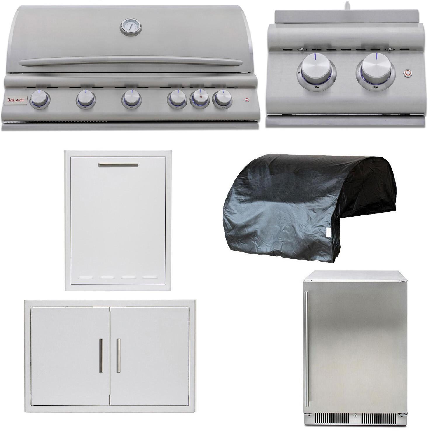 - Package includes Blaze LTE+ 40-in Propane Grill, Premium LTE+ Propane Double Side Burner, 40-in Double Access Door, Roll-Out Trash/Propane Tank Drawer, Outdoor Refrigerator & Grill Cover
