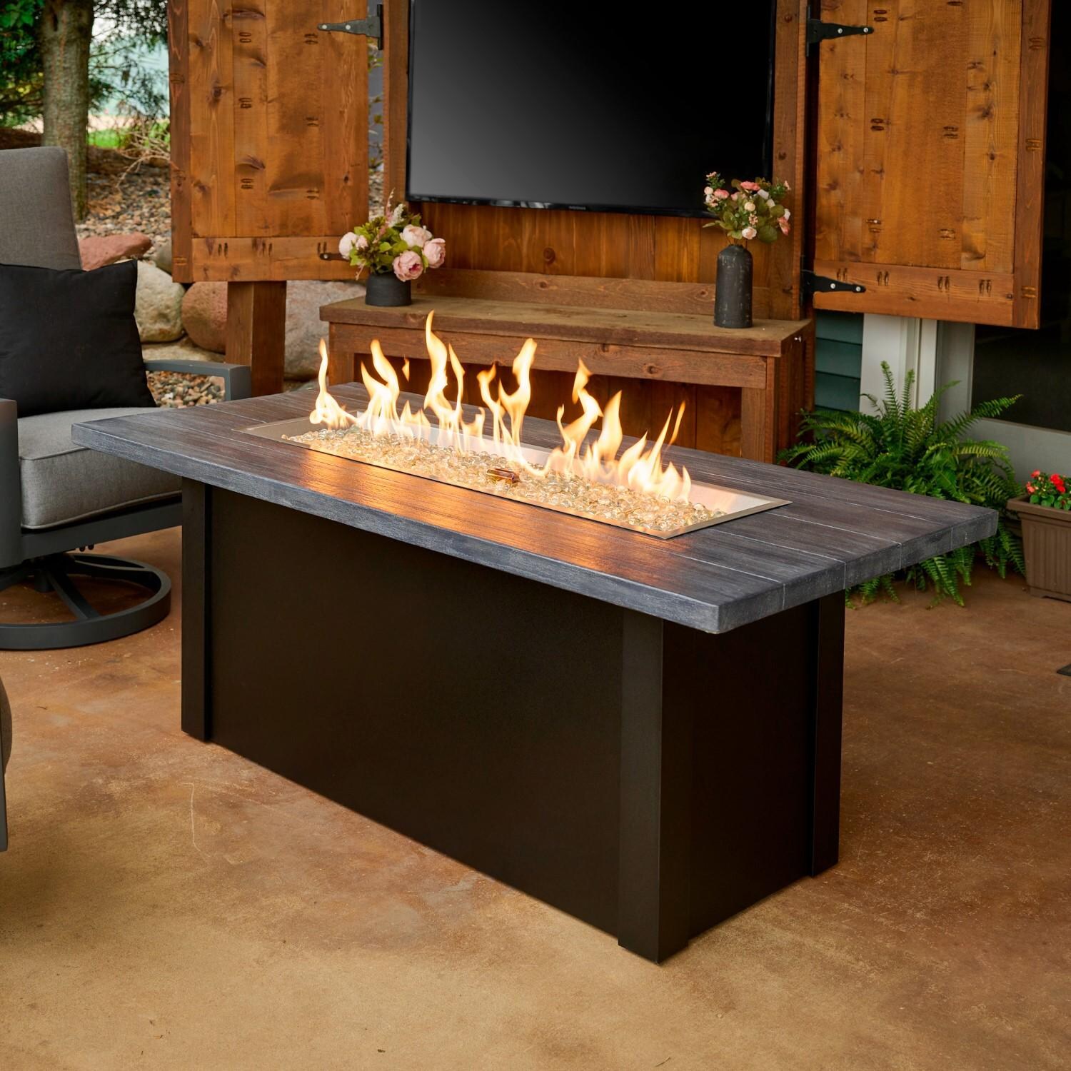 All-Season Comfort: Embrace the changing seasons with the Havenwood 62 Inch Rectangular Pebble Grey GFRC Concrete Natural Gas Fire Pit Table in Luverne Black with Direct Spark Ignition by The Outdoor Greatroom Company. Its adjustable flame allows you to tailor the heat to your preference, ensuring year-round comfort for chilly evenings or cooler days.