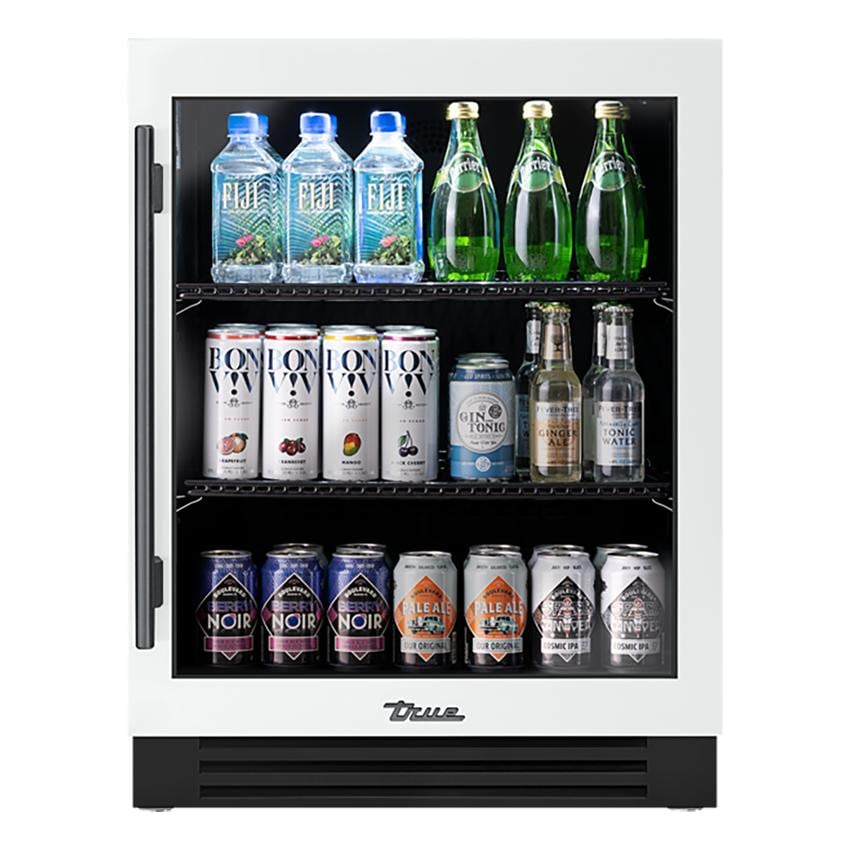 True ADA Height 24 Inch 5 Cu. Ft. Right Hinge Glass Door Outdoor Refrigerator - Matte White w/ Pewter Handles - TURADA-24-RG-A~030-H05