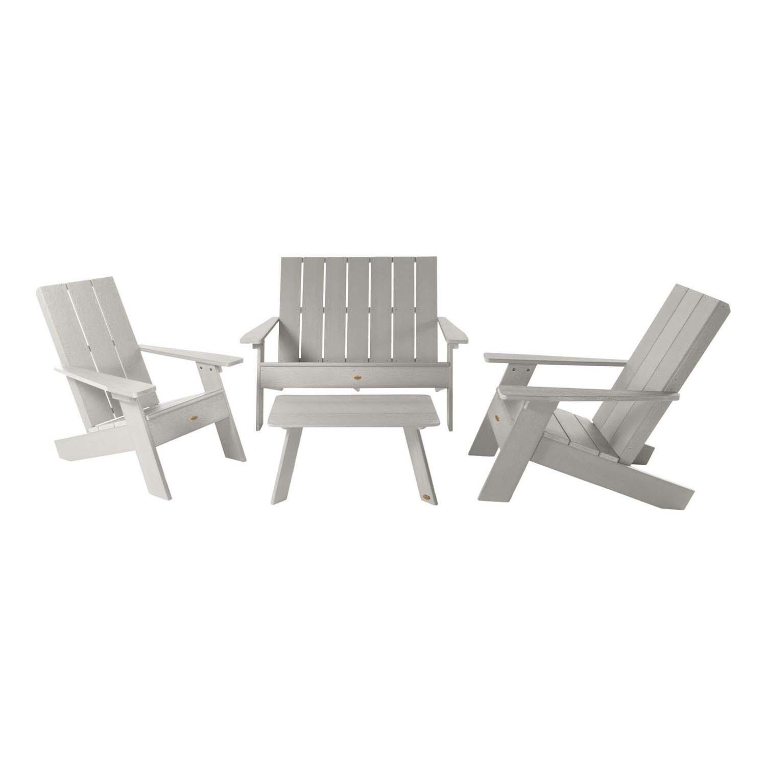 - Set Includes: 2 chairs, 1 bench, & 1 coffee table