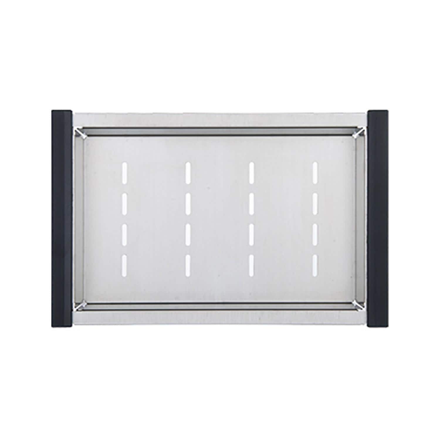 - Sink package includes stainless steel strainer drain, lid, cutting board, colander, drying rack, & basin rack; faucet not included
