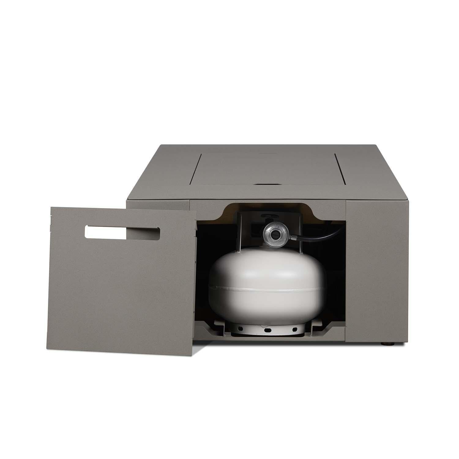 - Propane option requires 11 lb propane tank that sits inside table, can be converted to natural gas