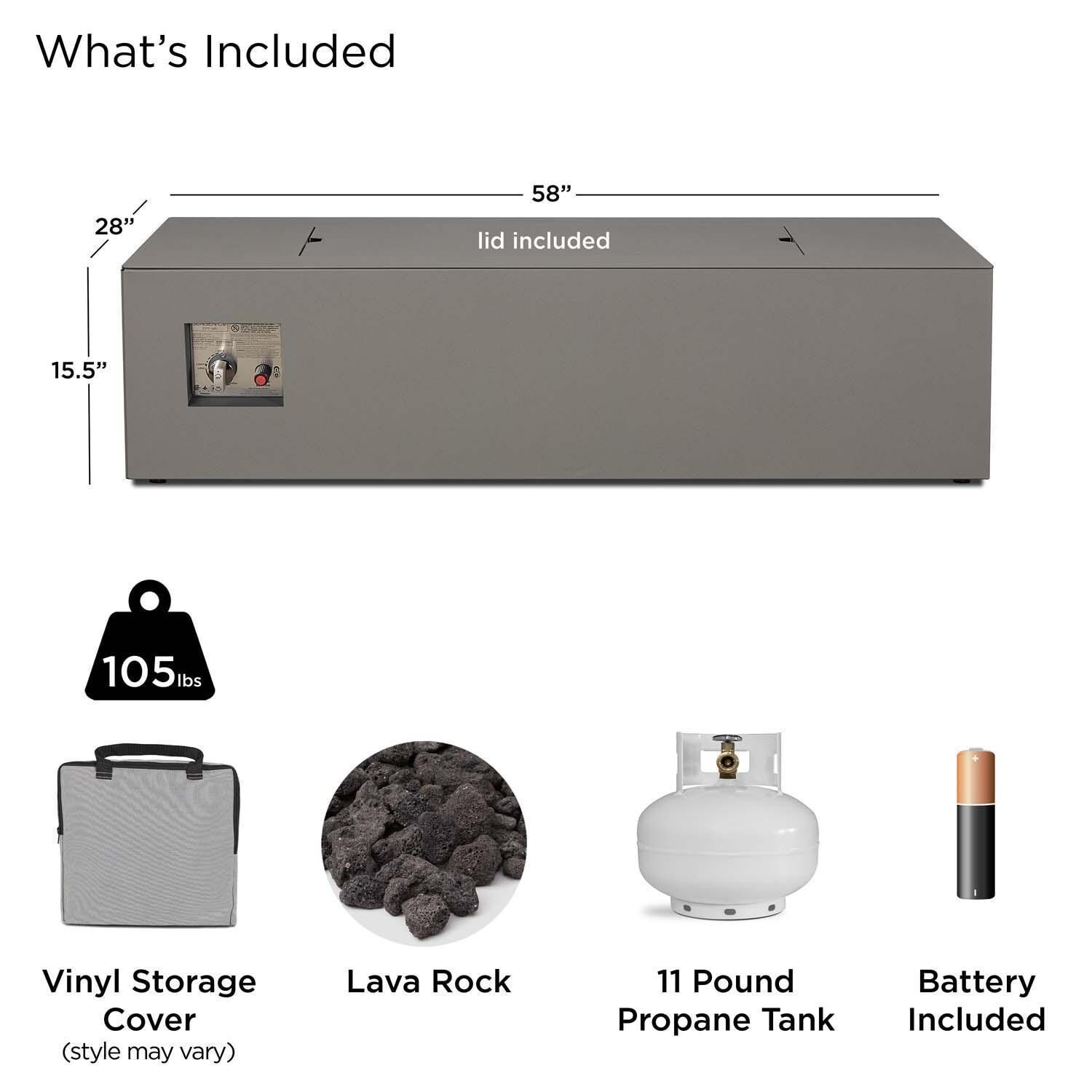 - Includes matching burner lid, lava rock filler, storage cover, empty 11 lb propane tank & natural gas conversion kit