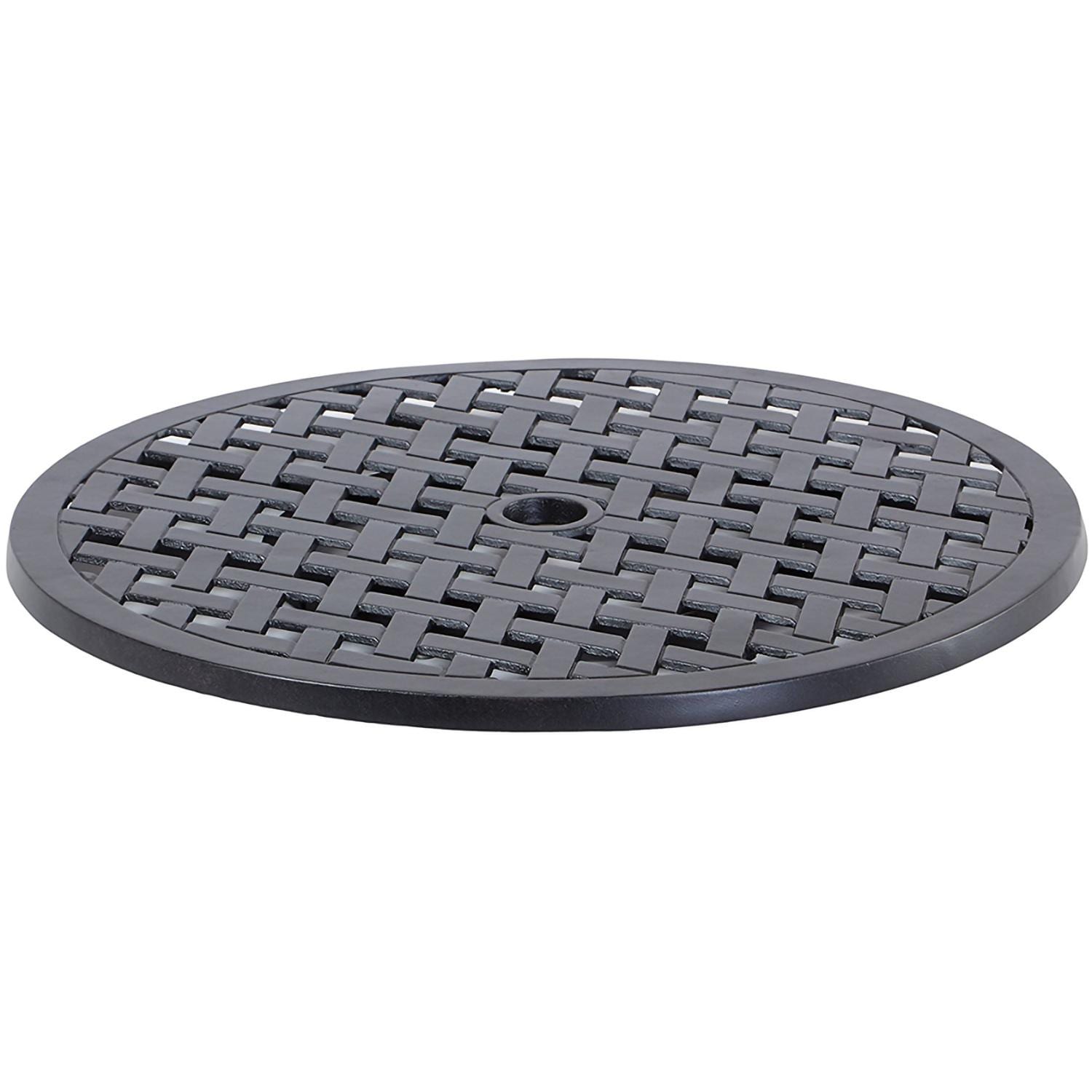 • Dining table is 100% solid cast aluminum & features a 1 3/4 inch umbrella hole