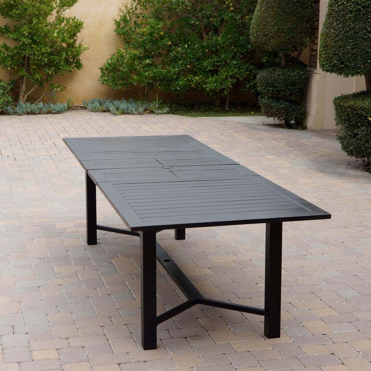 This 11-piece, rust-free patio dining set brings a touch of excitement to a party. The standard dining chairs 8 screws to assemble. The swivel rocker dining chairs only require 4 screws for assembly and they provide added comfort and versatility with the swivel capability of 360 degrees. Both styles of chairs are 100 percent heavy duty wind proof cast aluminum. The sides of the chairs have an intricate design adding more style to this collection. The middle of the table conveniently collapses as a butterfly style mechanism to adjust seating capacity for larger seating arrangements or smaller seating arrangements and to save space when needed. The attention to detail in the craftsmanship adds value to this set and is meant for long term use. Enjoy meals in style with the Nassau collection. To ensure a proper fit, please double-check the height and diameter of your umbrella base flange. The umbrella hole at the table's base is 1-7/8 inches, which may not be compatible with all umbrella bases. Cantilever style umbrellas provide shade without using the umbrella hole and may be an option.