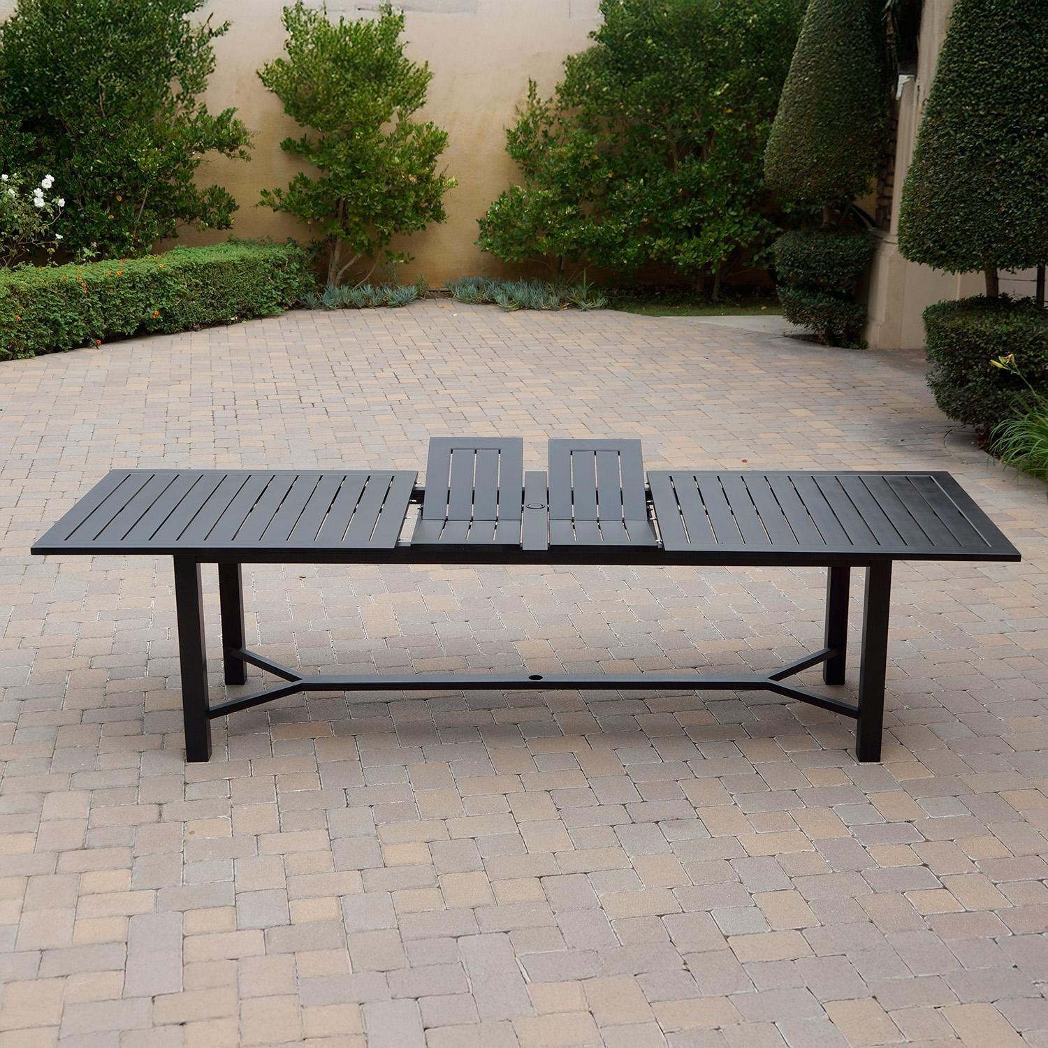This 11-piece, rust-free patio dining set brings a touch of excitement to a party. The standard dining chairs only require 8 screws to assemble. The swivel rocker dining chairs only require 4 screws for assembly and they provide added comfort and versatility with the swivel capability of 360 degrees. Both styles of chairs are 100 percent heavy duty wind proof cast aluminum. The sides of the chairs have an intricate design adding more style to this collection. The middle of the table conveniently collapses as a butterfly style mechanism to adjust seating capacity for larger seating arrangements or smaller seating arrangements and to save space when needed. The attention to detail in the craftsmanship adds value to this set and is meant for long term use. Enjoy meals in style with the Nassau collection. To ensure a proper fit, please double-check the height and diameter of your umbrella base flange. The umbrella hole at the table's base is 1-7/8 inches, which may not be compatible with all umbrella bases. Cantilever style umbrellas provide shade without using the umbrella hole and may be an option.