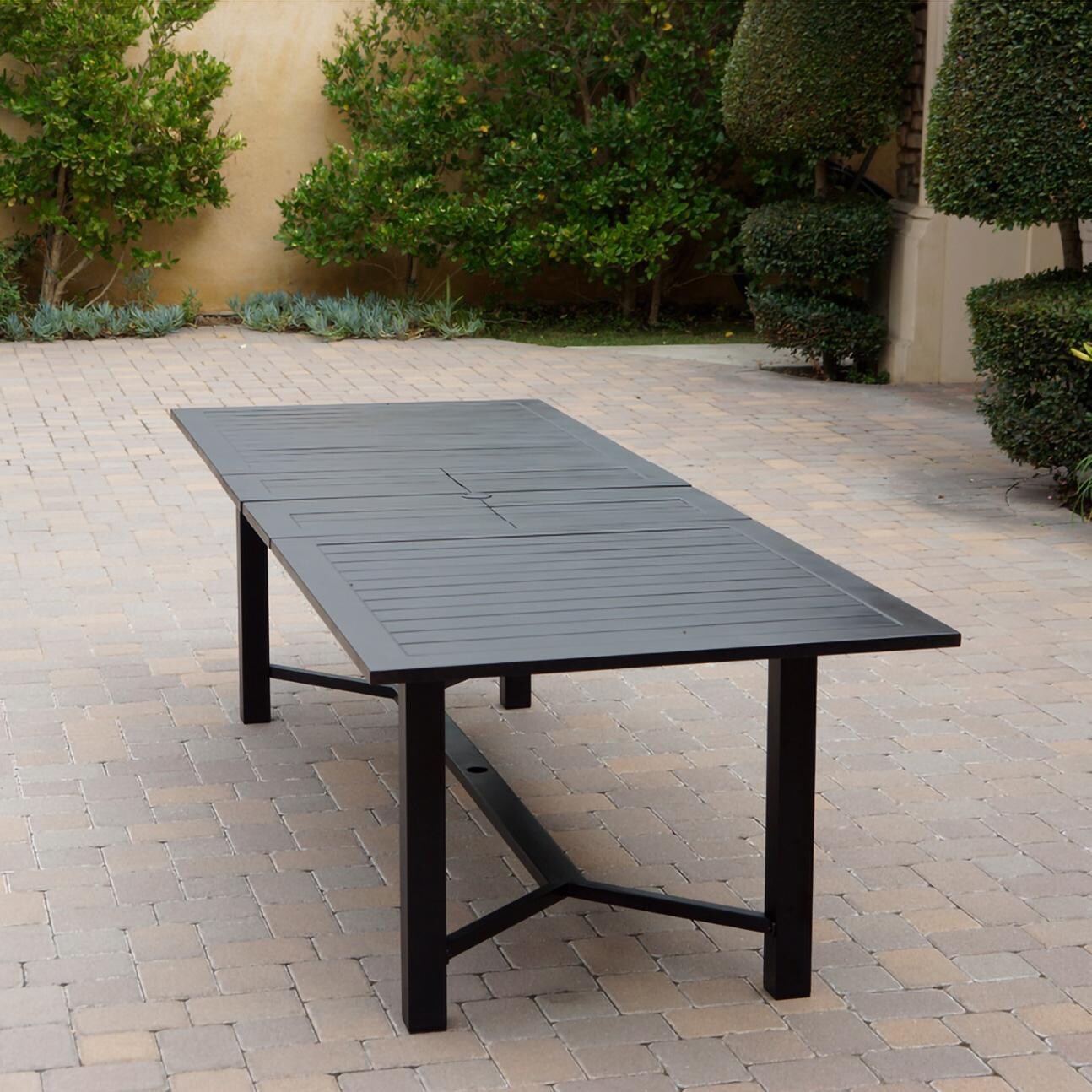 • Table has stowable double extensions, 1 3/4 inch umbrella hole & 1 7/8 inch base hole