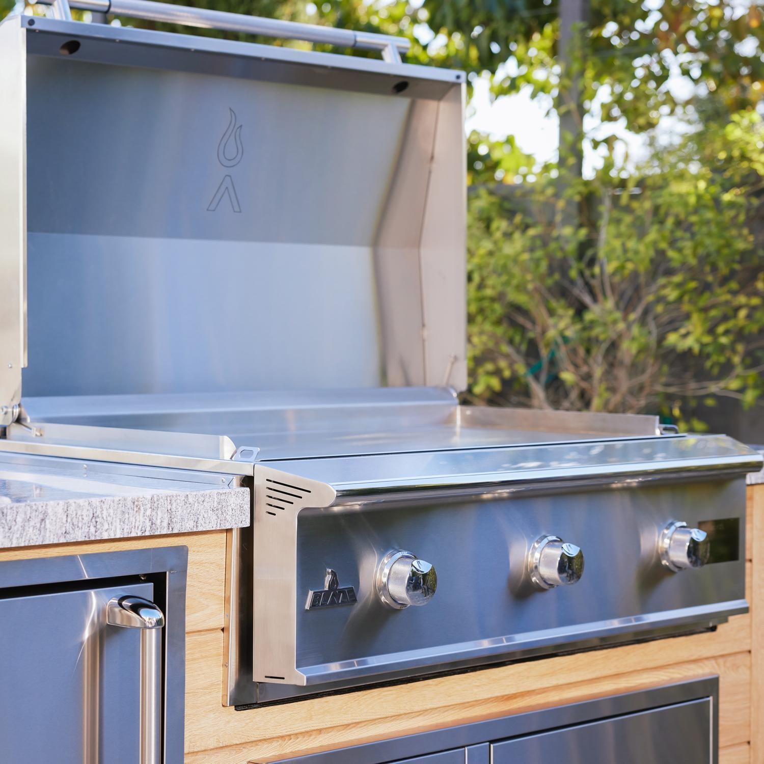 Built with a reinforced stainless steel cooking surface and attached lid, the Blaze LTE PRO Natural Gas Griddle is the heaviest in its class, promising exceptional durability and longevity. Its modern design ensures even heat across the surface for the most consistent results. All in all, it's a professional-level griddle that delivers professional-grade performance in your backyard.