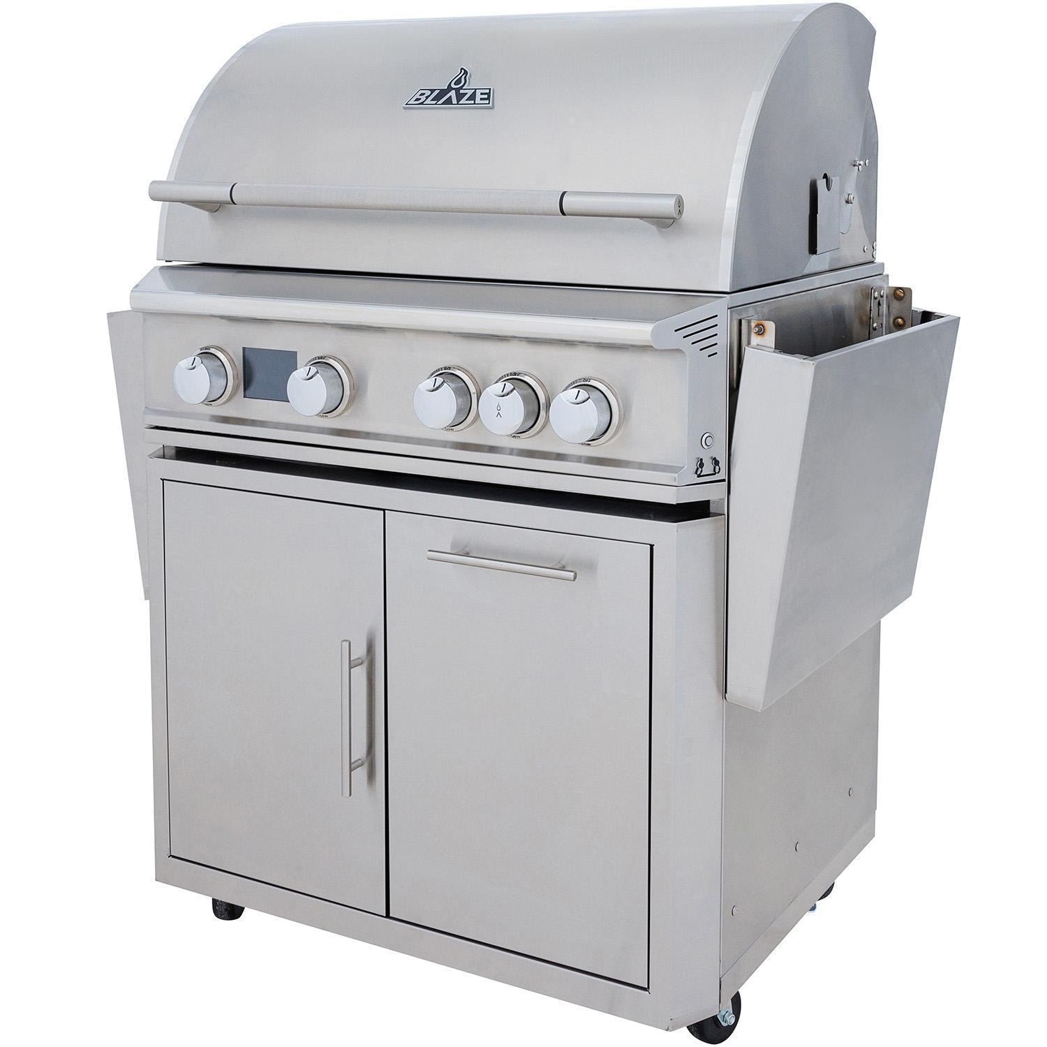 Like all Blaze gas grills, its made of 304 stainless steel down to the cast stainless steel burners for impressive durability, a double-lined hood to prevent discoloration, and a reliable flame-thrower ignition.