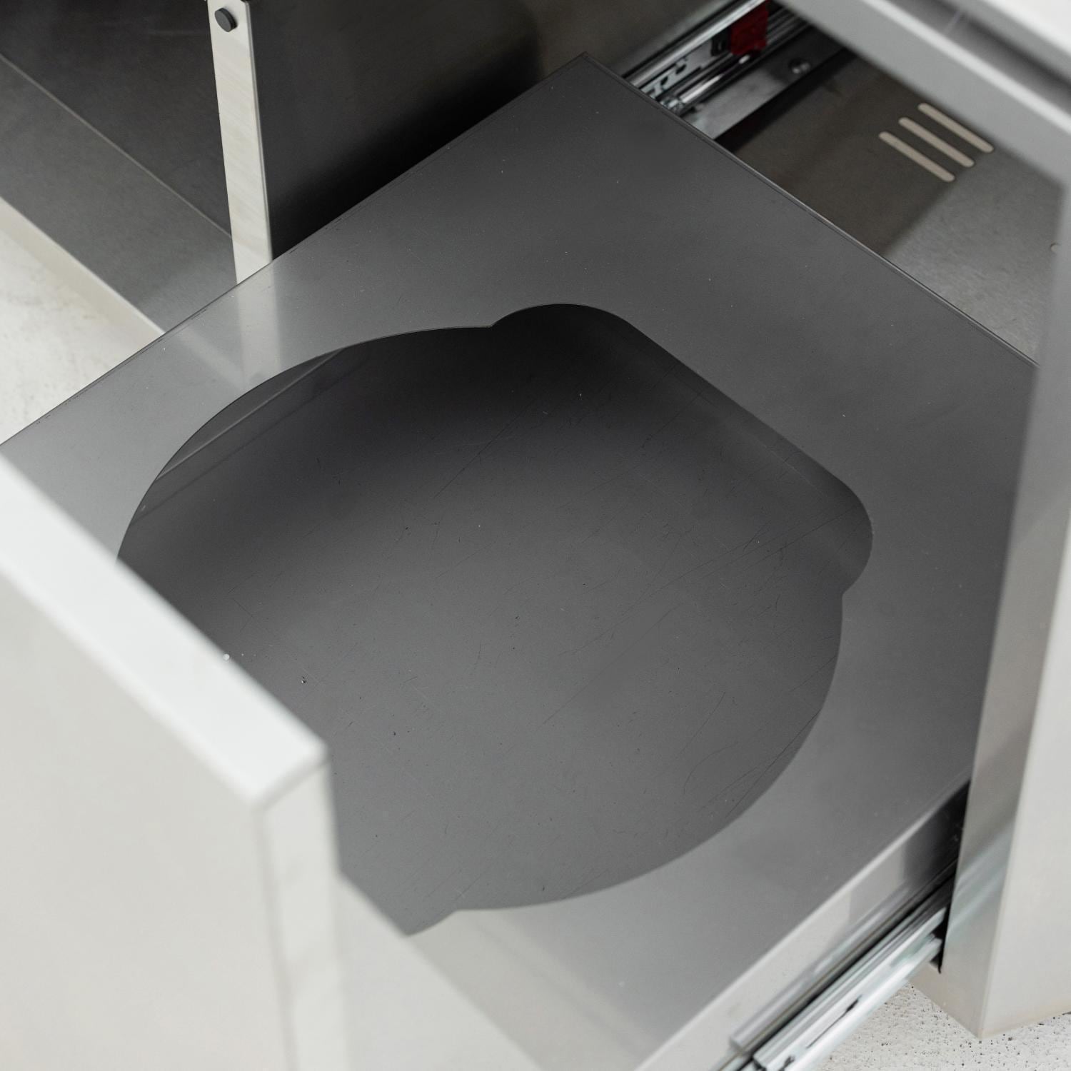 Give yourself a lot more storage! The center under-the-grill cabinet provides ample room for additional storage. To the left you get a drawer and a pull-out trash bin — which is something most people find indispensable once they have one! On the right are three drawers — with illuminated interiors (AAA batteries required)!