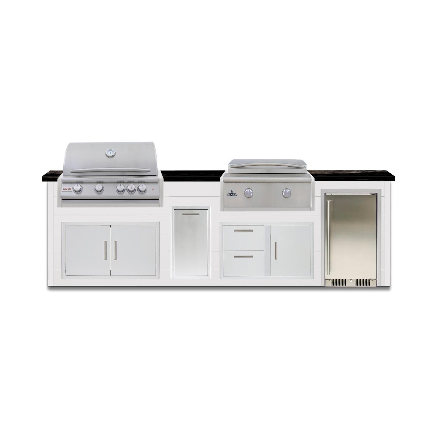 I had our Atlanta Design Center design my outdoor kitchen - Custom Built, 15'-7" island with a Blaze $LTE+, Blaze Outdoor Oven, and an LTE+ 30" Griddle with a Blaze Glass Door Beverage Cooler, 21" Sink, and all of the cabinets to go below the counter and 2 Vent Hoods for ventilation. The design center then sent the design to our Design Services group to do a rendering and to our BBQGuys Signature Island manufacturer. The rendering (attached image) and the as-built island were amazingly similar. The island was perfect for the rough opening and easy to put together (by myself - though not recommended :) ) The island manufacturer worked closely with me to redesign the vent panels in the island for safety. The cooking appliances are fantastic to prepare all kinds of meals from Breakfast to Lunch to Dinners - the TV was a nice touch! (Thank you Jade!! - the Designer - for that touch) It is everything I wanted it to be and more. The deliveries were easy to handle and on-time. The carrier (R&L) was easy to work with and put the equipment right where I asked them to. They have powered pallet jacks to make that effort easy on the driver! Thanks to all of the groups involved in building my dream Outdoor Kitchen.