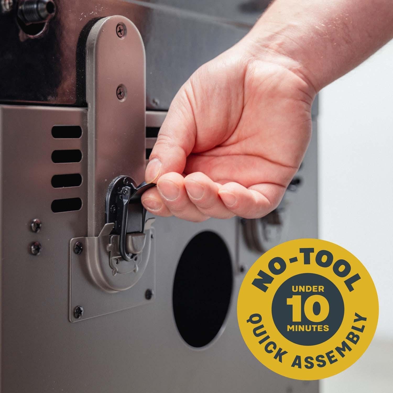 - Patented, no-tool assembly design sets up in less than 10 minutes to get you cooking faster