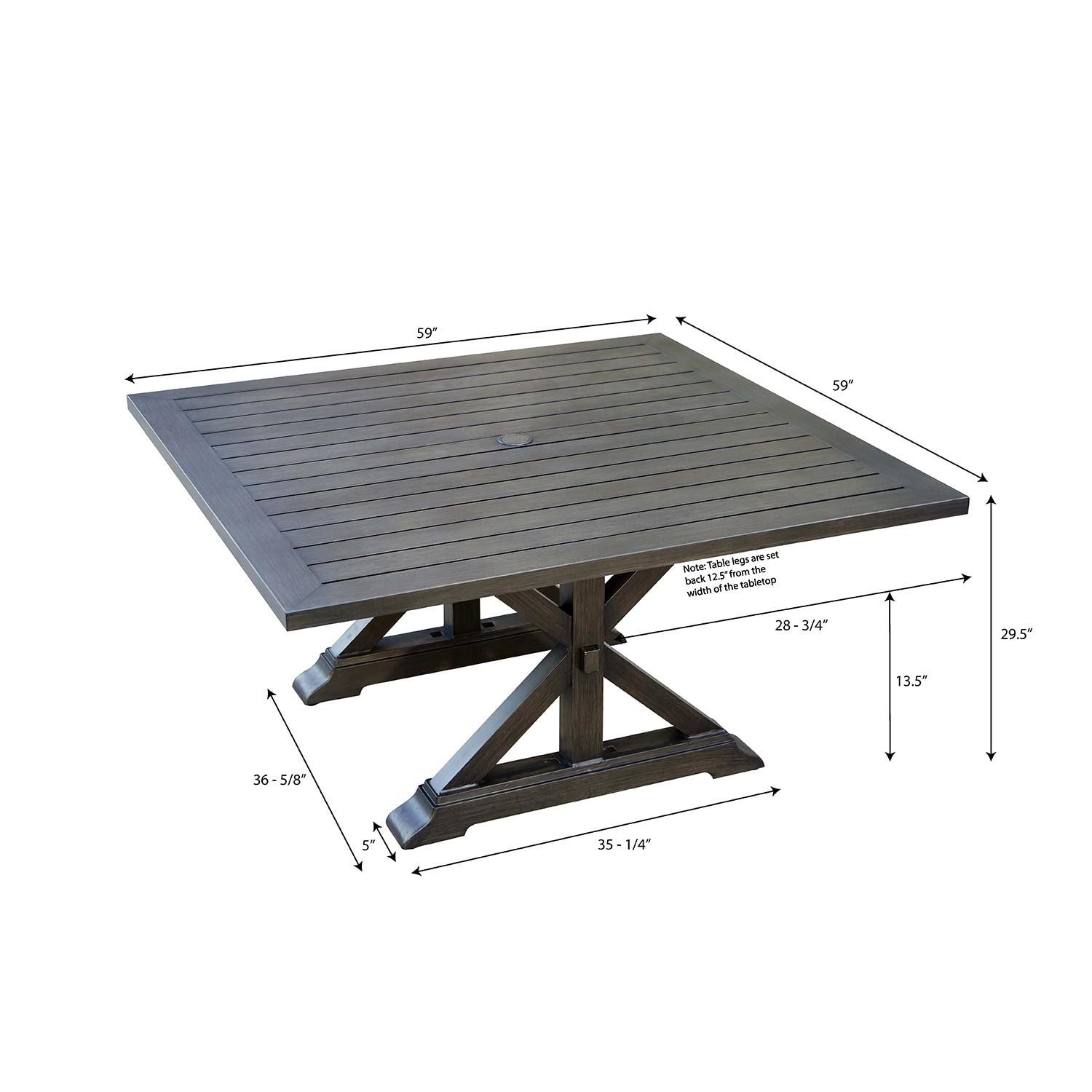 Darlee Brooklyn 6-Piece Dining Set Create a relaxed and comfortable atmosphere in your outdoor space with this exquisite 8-piece furniture set. Made from rust-proof aluminum. Designed with a handmade wood grain paint finish, it exudes a high-end and sophisticated feel. The one-piece 59 inch square table top ensures easy installation, while the square dining table comfortably accommodates up to eight guests without taking up excessive space. The park bench-style dining chairs offer both simplicity and elegance, featuring a space-saving. Dining chair stackable design with a one-piece welded structure for durability. Combining style, functionality, and comfort, this set is the perfect addition to any outdoor setting. Order now to transform your outdoor experience!