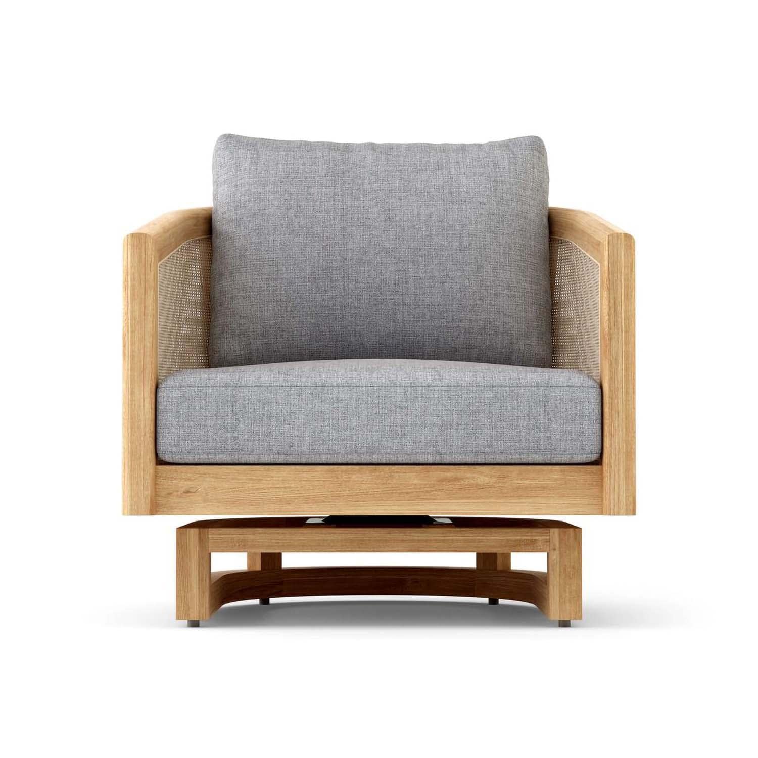 With seating up to five, indulge in deep seating luxury in the comfort of your home and yard with this four-piece Diamond Cay Deep Seating Set. Featuring an exquisite round curve design that includes two Swivel Diamond Cay Armchairs providing 360 degrees of unhindered movement, the Diamond Cay 3-Seater Sofa, and the Diamond Cay Rectangular Coffee Table, it's expertly crafted from premium grade unfinished teak and a synthetic rattan weave making the perfect materials for sustained outdoor use. Includes non-marking rubber shoes that provides stability under any surface and six inch All-Weather Sunbrella Cushions with choice of color options - exuding luxury and comfort.