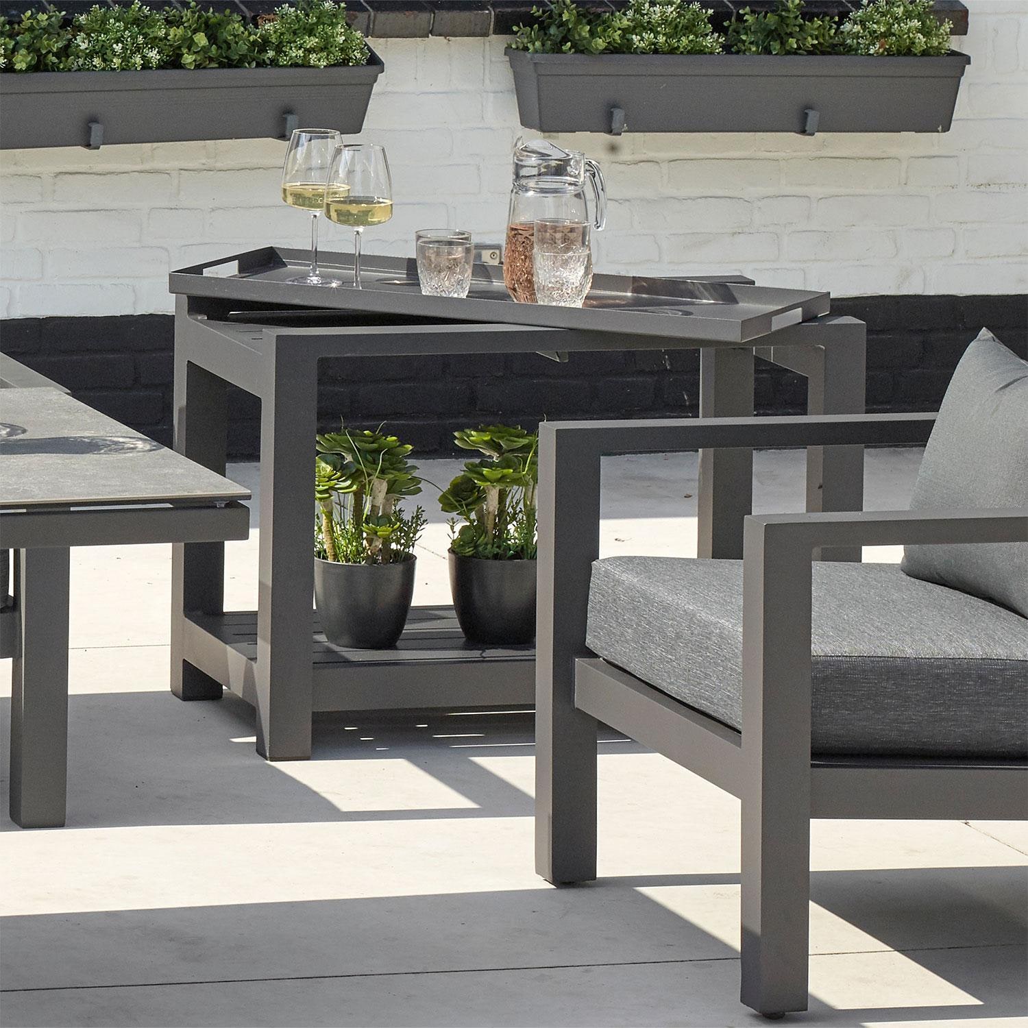 - Convenient, removable serving tray top with carry handles