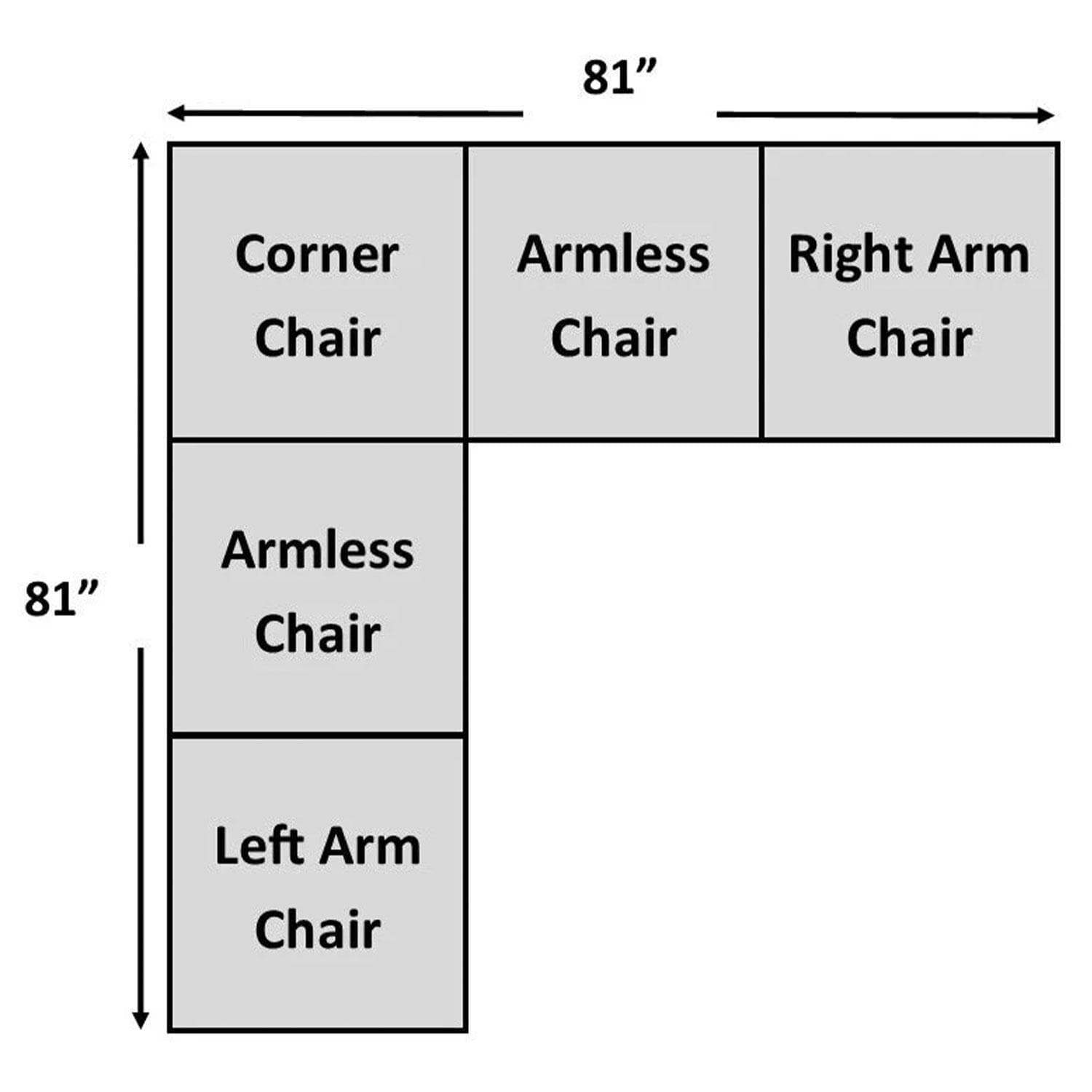 Corner Chair: 31 1/4 W X 31 1/4 D X 37 H.
