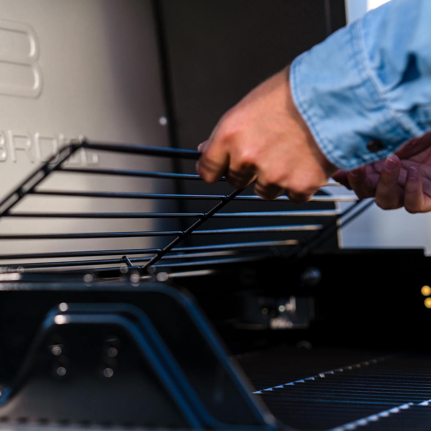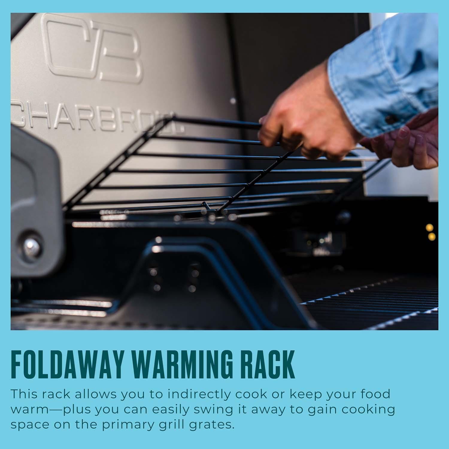 - Enjoy 490 sq. inches of cooking space & easily multitask w/ the swing away warming rack