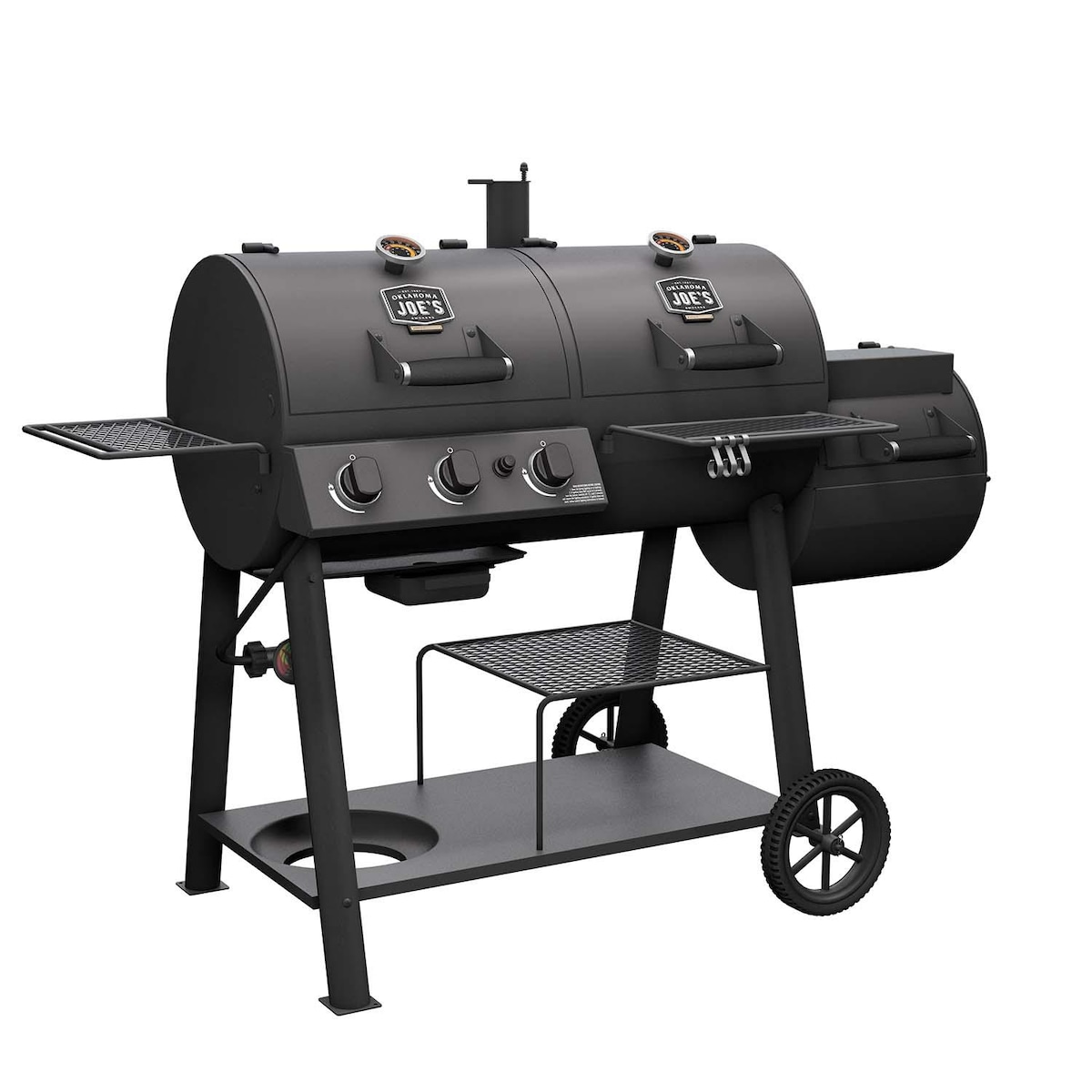 Redesigned to improve your smoking & grilling experience, this upgraded Canyon Combo DLX has additional cooking grates, pivoting cool touch handles, an easy-access ash pan and rubber treaded wheels. There are tool hooks, a charcoal basket, a robust staging shelf and a fuel gauge.