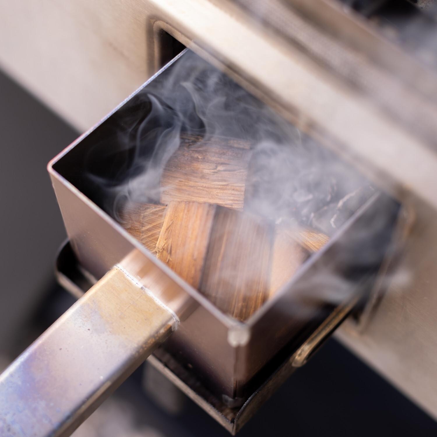 If you want a little more smoke and more smoke flavor than you may get with pellets alone, the reinvented Smoke Box lets you cook with wood pellets, wood chunks or chips, and even charcoal. Use the damper to simultaneously control heat and flavor.