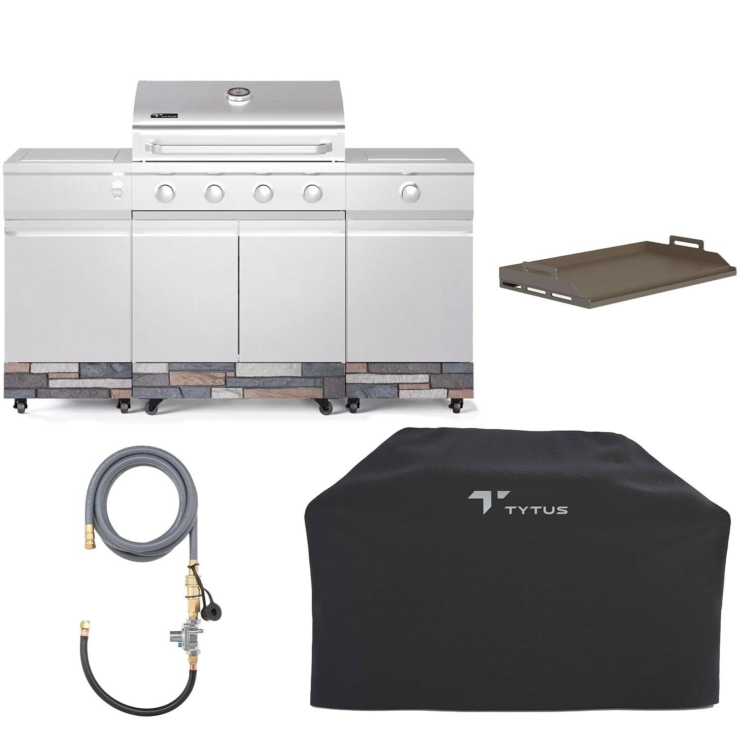 I was in the market for a new grill and I was comparing brands with a pretty decent budget. I love outdoor kitchens and I was looking for something that could capture the feel of an outdoor kitchen but for a fraction of the cost. And I found exactly what I was looking for from TYTUS. Grill works great, heats up quickly and I built it in about 45 minutes. Customer service is outstanding! Grill lid came dented and a new lid will be here tomorrow.and…I got the island cover for free with a promo code! No problems at all so far. Love this grill and company