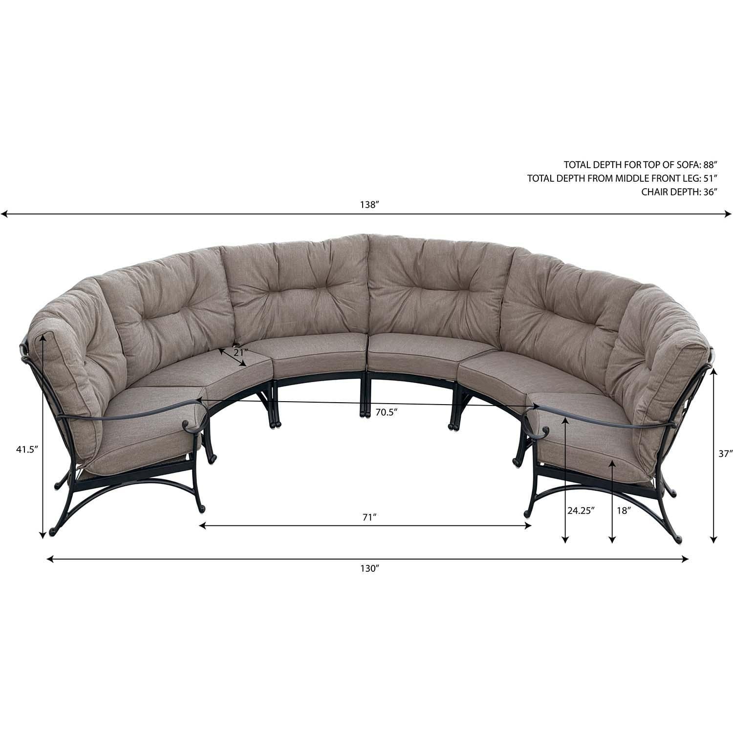 - Set Includes: 6 Pc Crescent sofa with Sunbrella Cushions