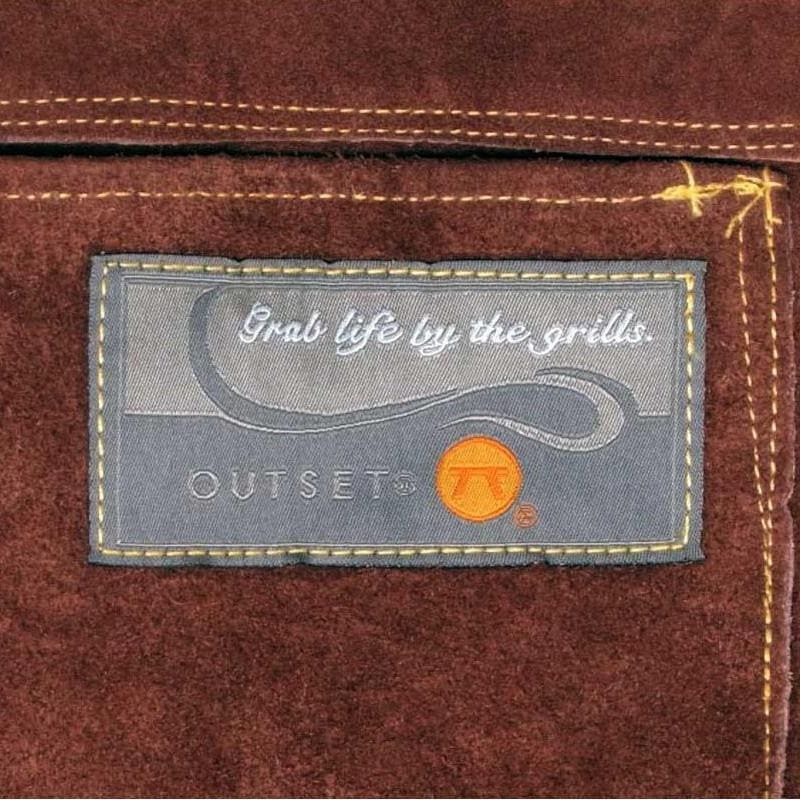 Stay clean and safe with this Outset Leather BBQ Apron. The durable suede exterior features a flame retardant liner which protects you and your clothes from splatters and heat while grilling and is one size fits all with the adjustable neck strap. The apron ties at the waist and has two (2) deep pockets that keeps your grilling tools and condiments handy.