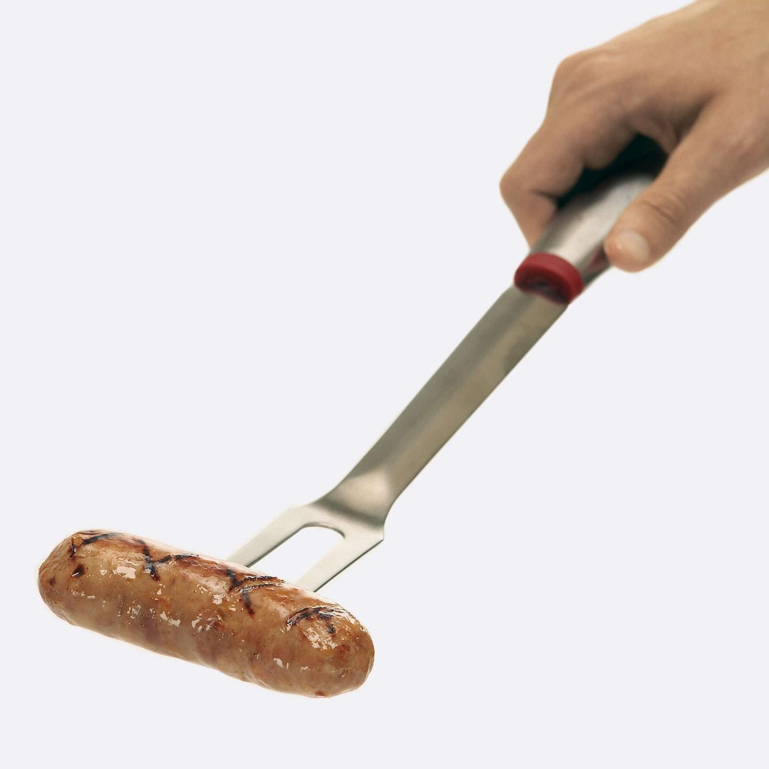 - Set includes turner, silicone-tip tongs, BBQ fork, grill brush