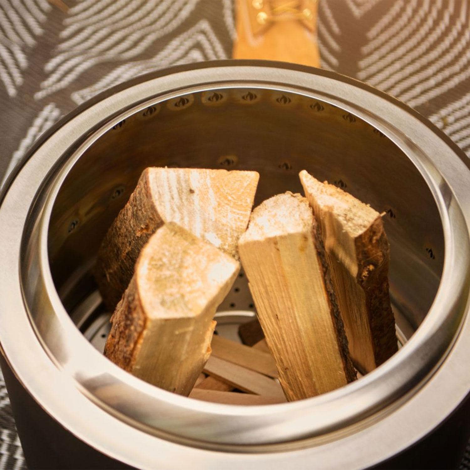 - MULTI-FUEL - Select the fuel type that works best for you. The Timberwolf® Smoke-Less fire pit burns wood, pellets, or charcoal for cooking