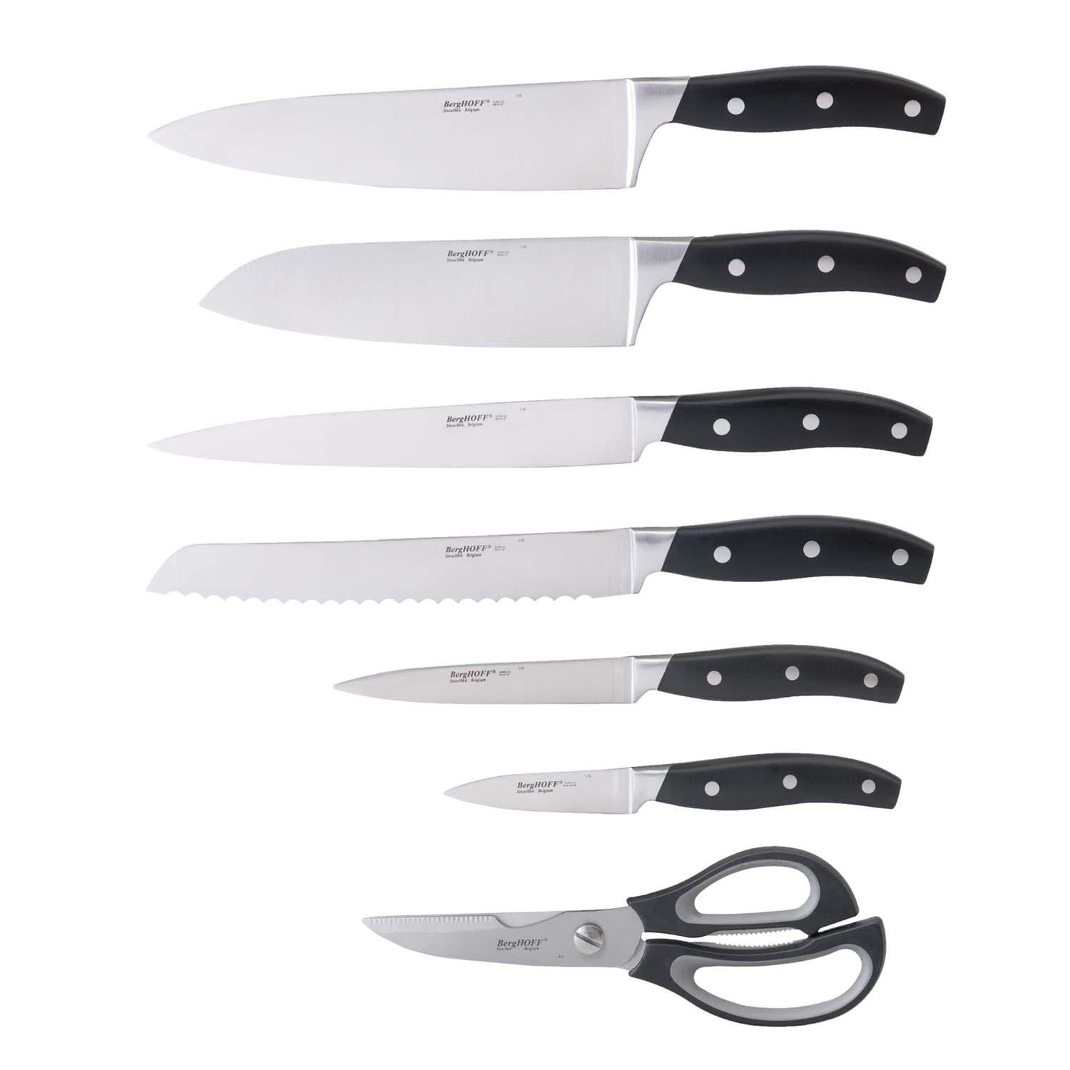 - Set Includes: chef, santoku, bread, carving, utility, paring knives, scissors, sharpener, knife block; stainless steel; comfort-grip handles