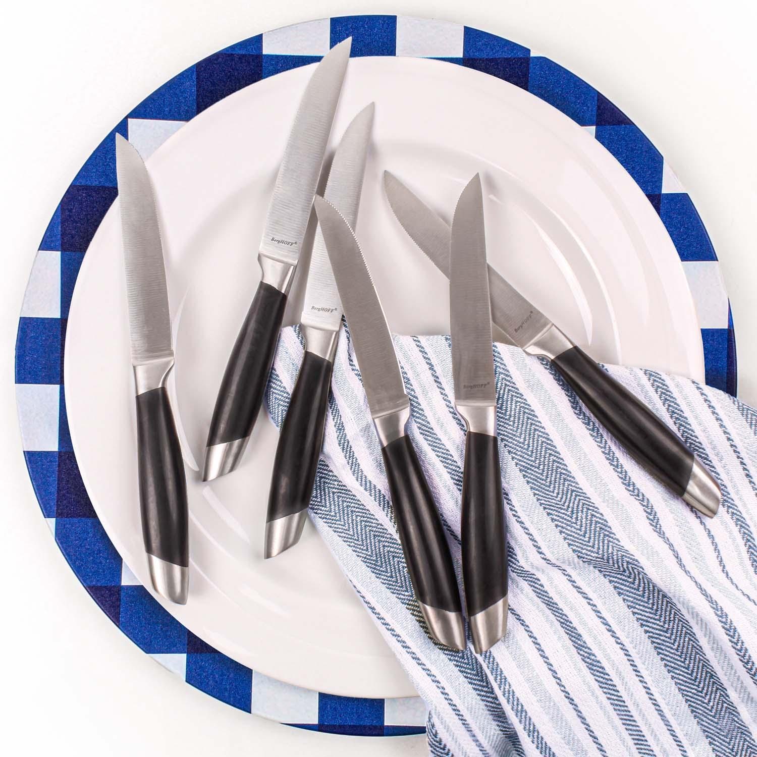 - Set Includes: 12 18/10 stainless steel blades; 4.75-in serrated knives; triple-riveted ABS handles; satin finish