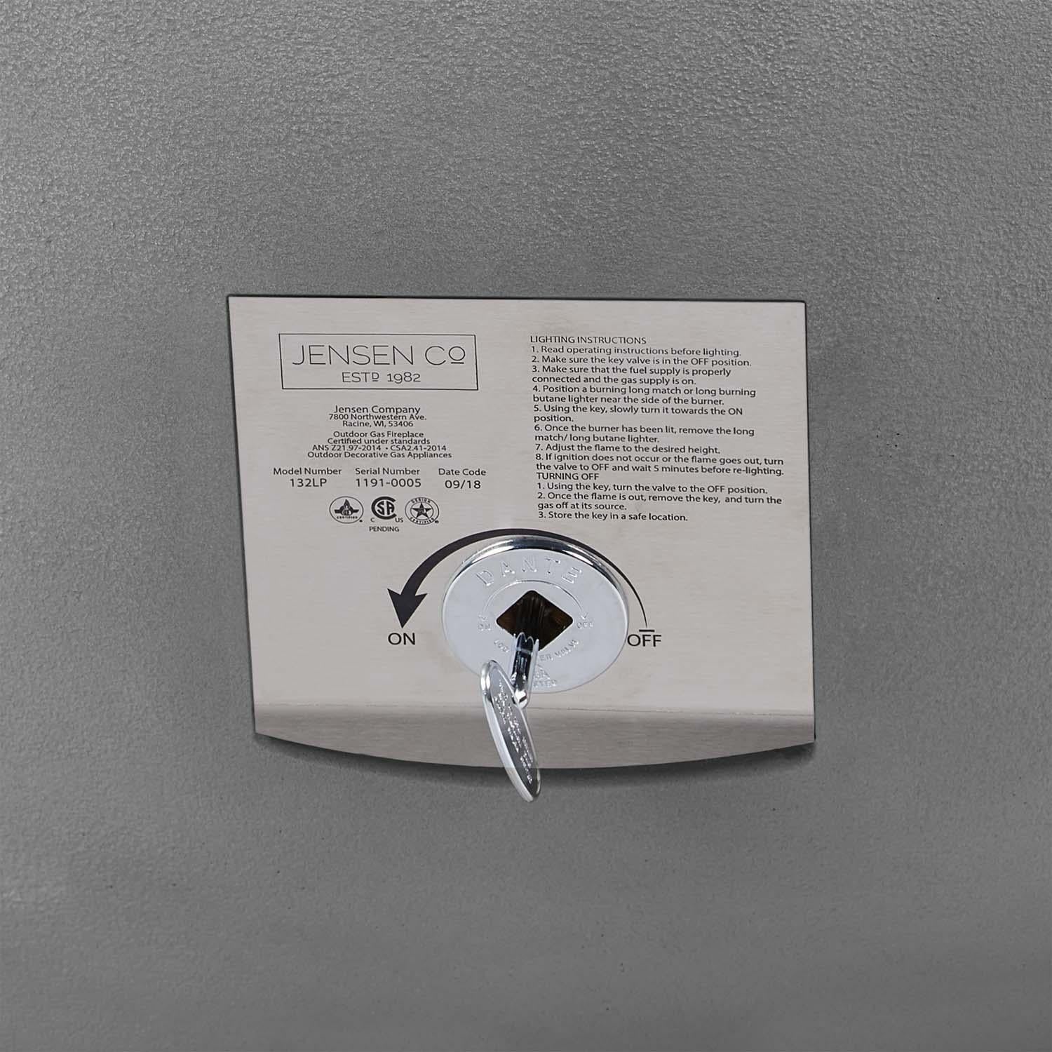 - Includes fire table with brass burner, black lava rock filler, valve key, storage cover, tank seat and 8' LP hose with regulator